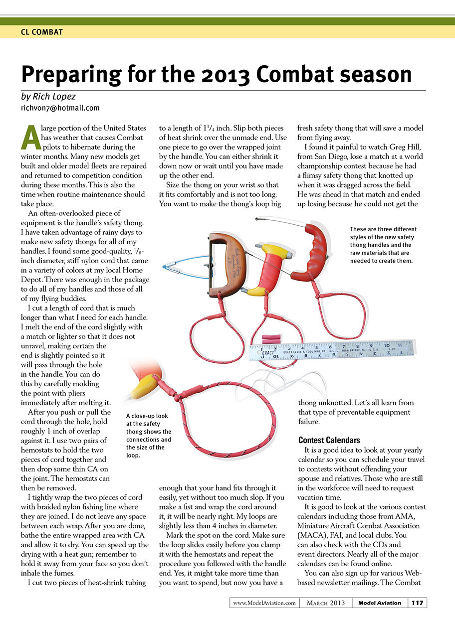 I found it painful to watch Greg Hill, from San Diego, lose a match at a world championship contest because he had a flimsy safety thong that knotted up when it was dragged across the field. He was ahead in that match and ended up losing because he could not get the thong unknotted. Let’s all learn from that type of preventable equipment failure.