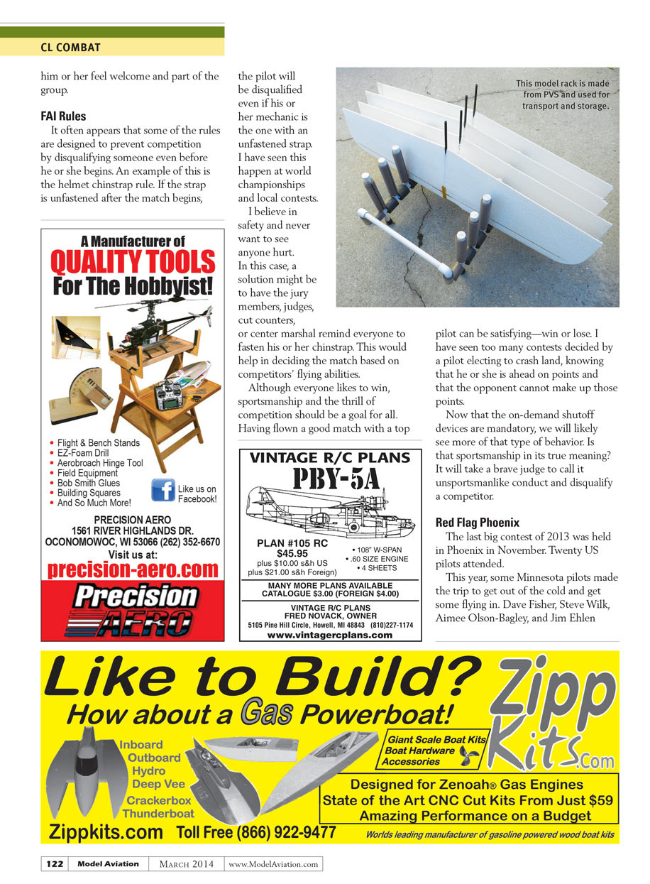 Nearly all CL Combat competitors these days fly RTF models. Alan DeVeuve, Lester Haury, Phil Cartier, Pete Athans, Howard Williams, Russ Hester, and James McKinney are a few exceptions.