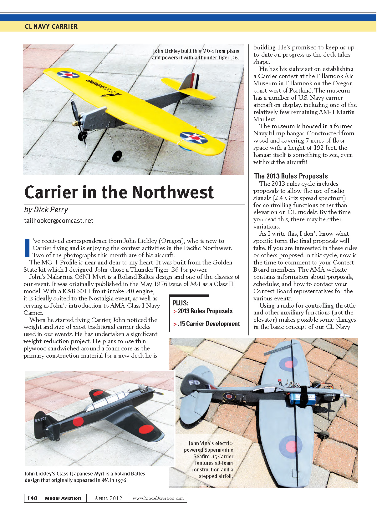 Carrier flying and is enjoying the contest activities in the Pacific Northwest.