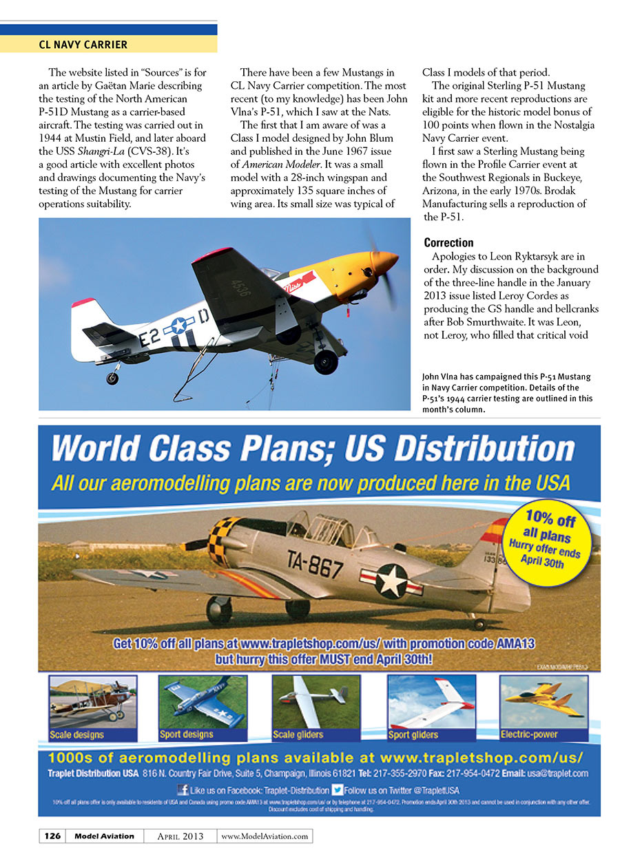 The original Sterling P-51 Mustang kit and more recent reproductions are eligible for the historic model bonus of 100 points when flown in the Nostalgia Navy Carrier event.
