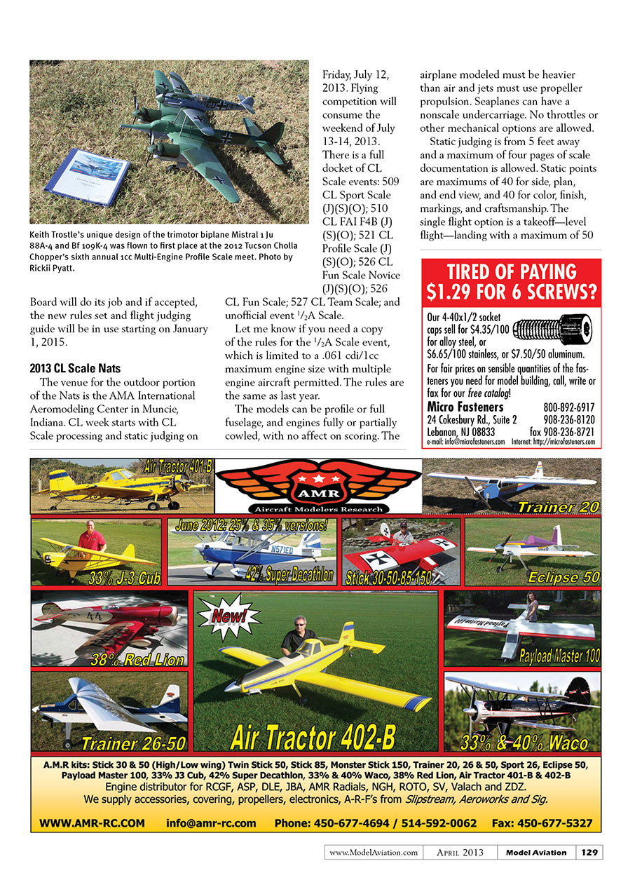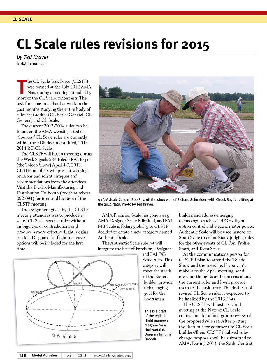 As the communications guy for CLSFT, I will be attending the Toledo Show and the meeting. If you can’t make the April meeting, send me your thoughts and concerns about the current rules and I will provide them to the task force. The draft set of revised CL Scale rules is expected to be in final format by the 2013 AMA Nationals.