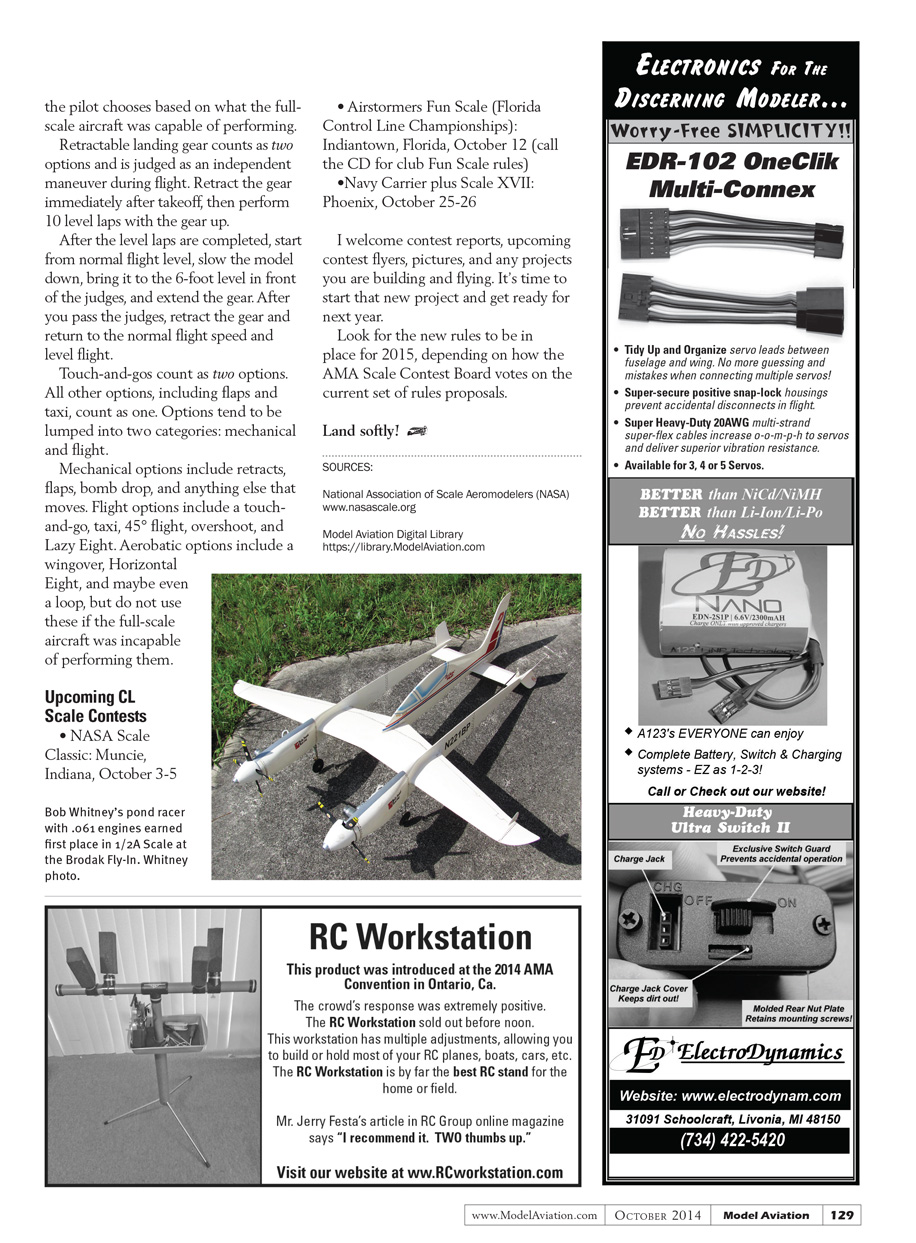 Fun Scale had nine entries with Ed Mason taking a commanding lead with his DC-6 (again mentioned in my February 2014 column) at 106.25 points. Ed has its four glow engines working well and it made a difference in his flight scores. Getting four glow engines to run in sync and shut down on command requires the right setup and preflight.