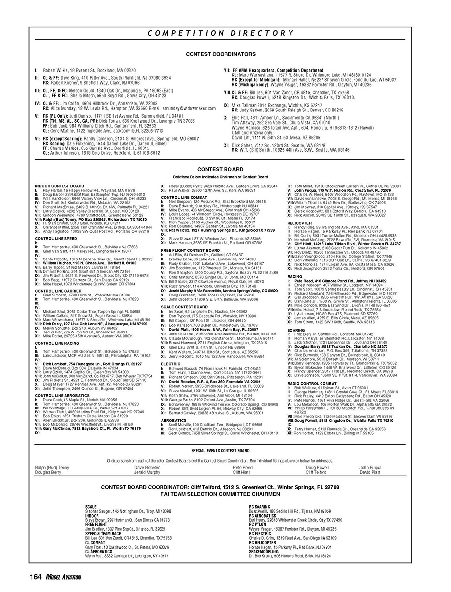 VI: RC (except Soaring): Randy Cameron, 2134 S. Hillcrest Ave., Springfield, MO 65807
