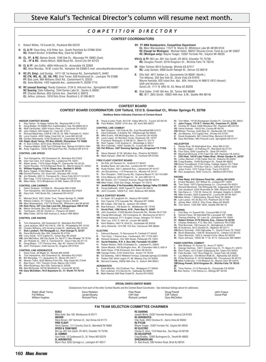 VI: RC (except Soaring): Randy Cameron, 2134 S. Hillcrest Ave., Springfield MO 65807