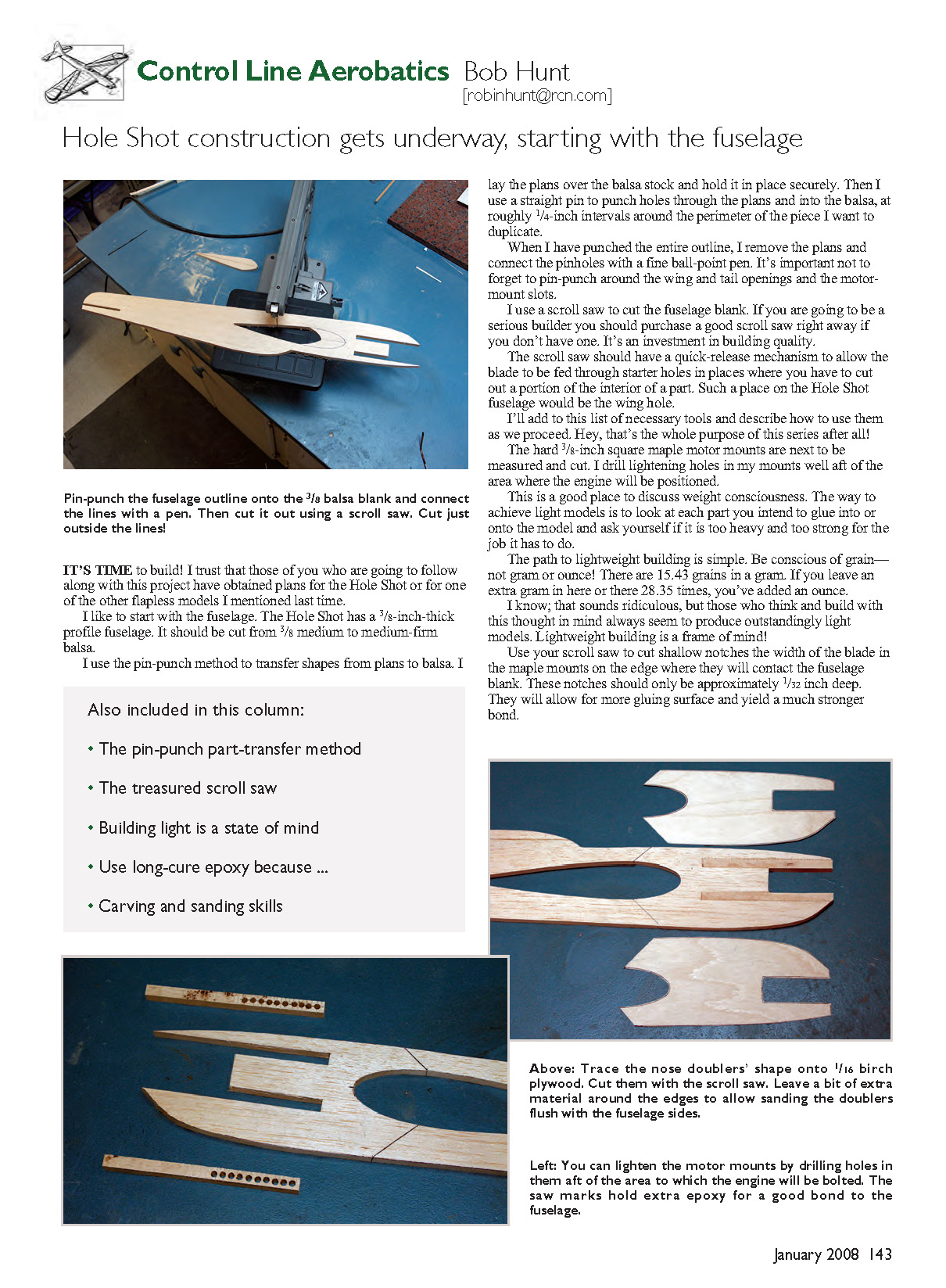 I like to start with the fuselage. The Hole Shot has a 3/8-inch-thick