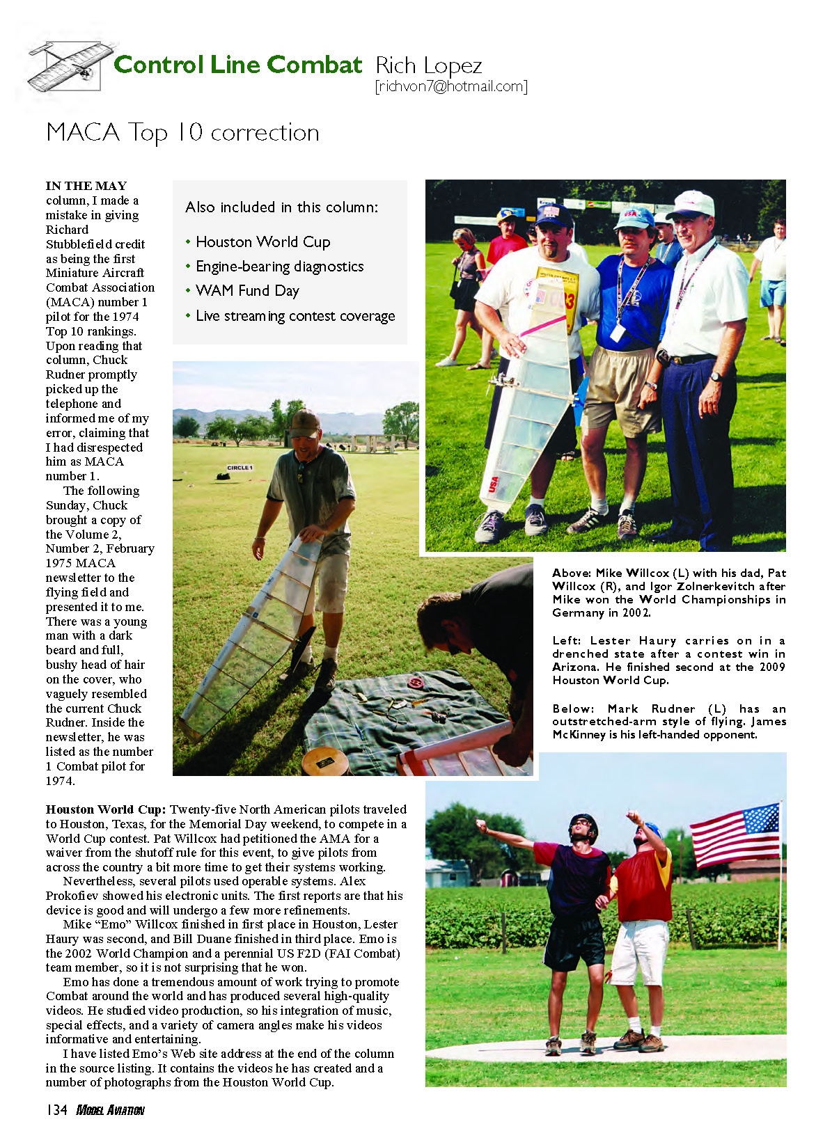 the 2002 World Champion and a perennial US F2D (FAI Combat)