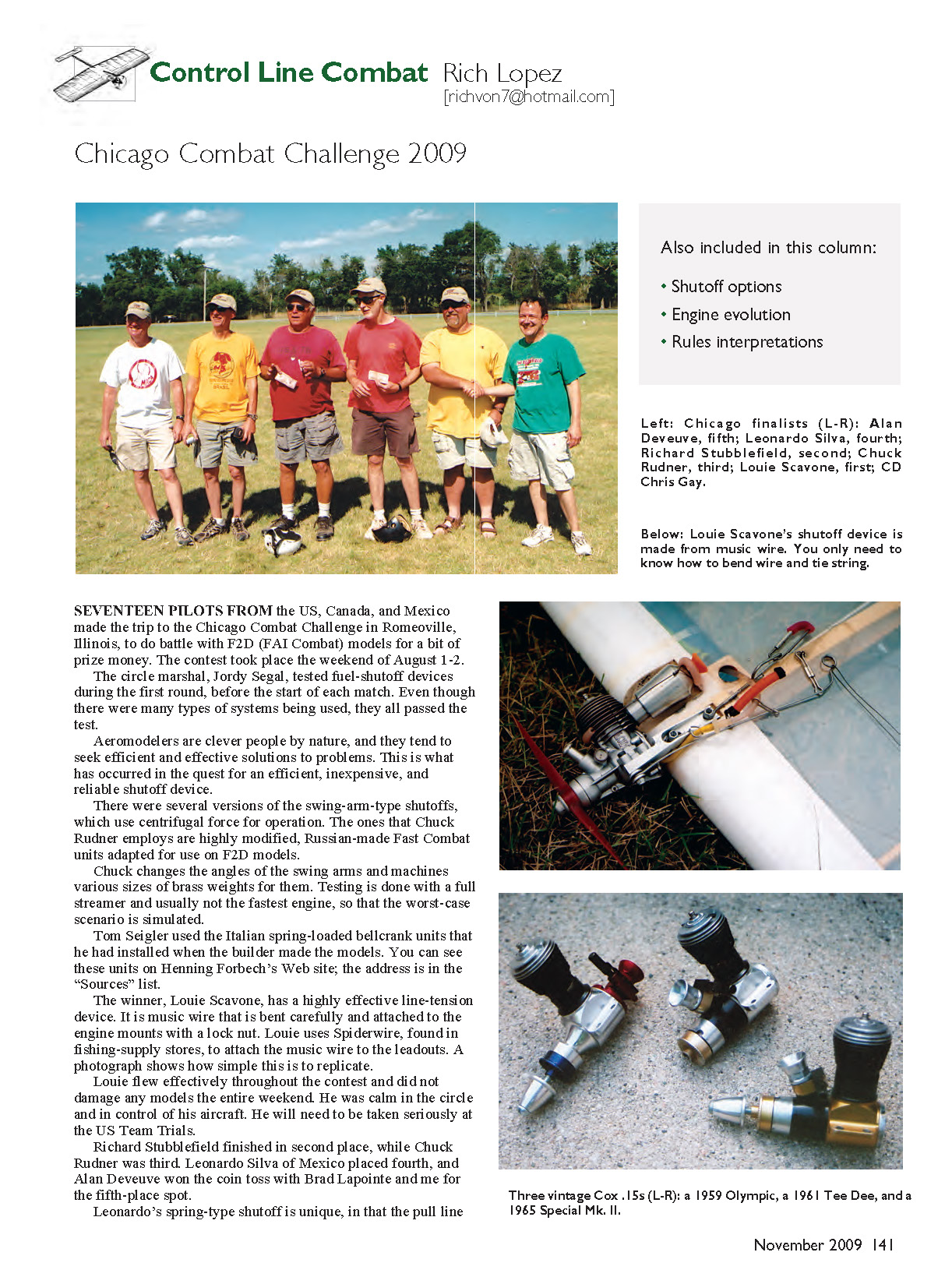 Illinois, to do battle with F2D (FAI Combat) models for a bit of