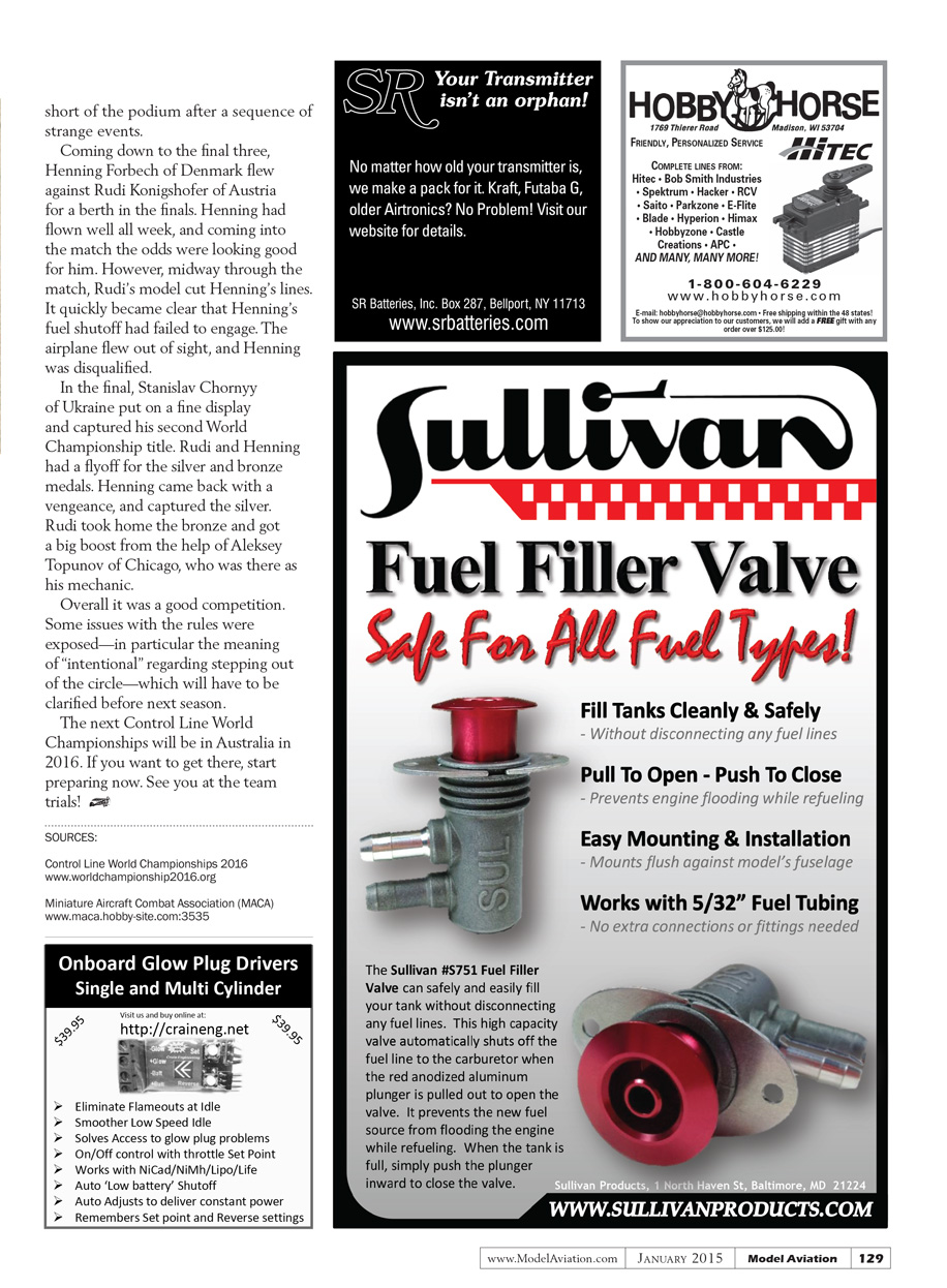 The next Control Line World Championships will be in Australia in 2016. If you want to get there, start preparing now. See you at the team trials![dingbat]