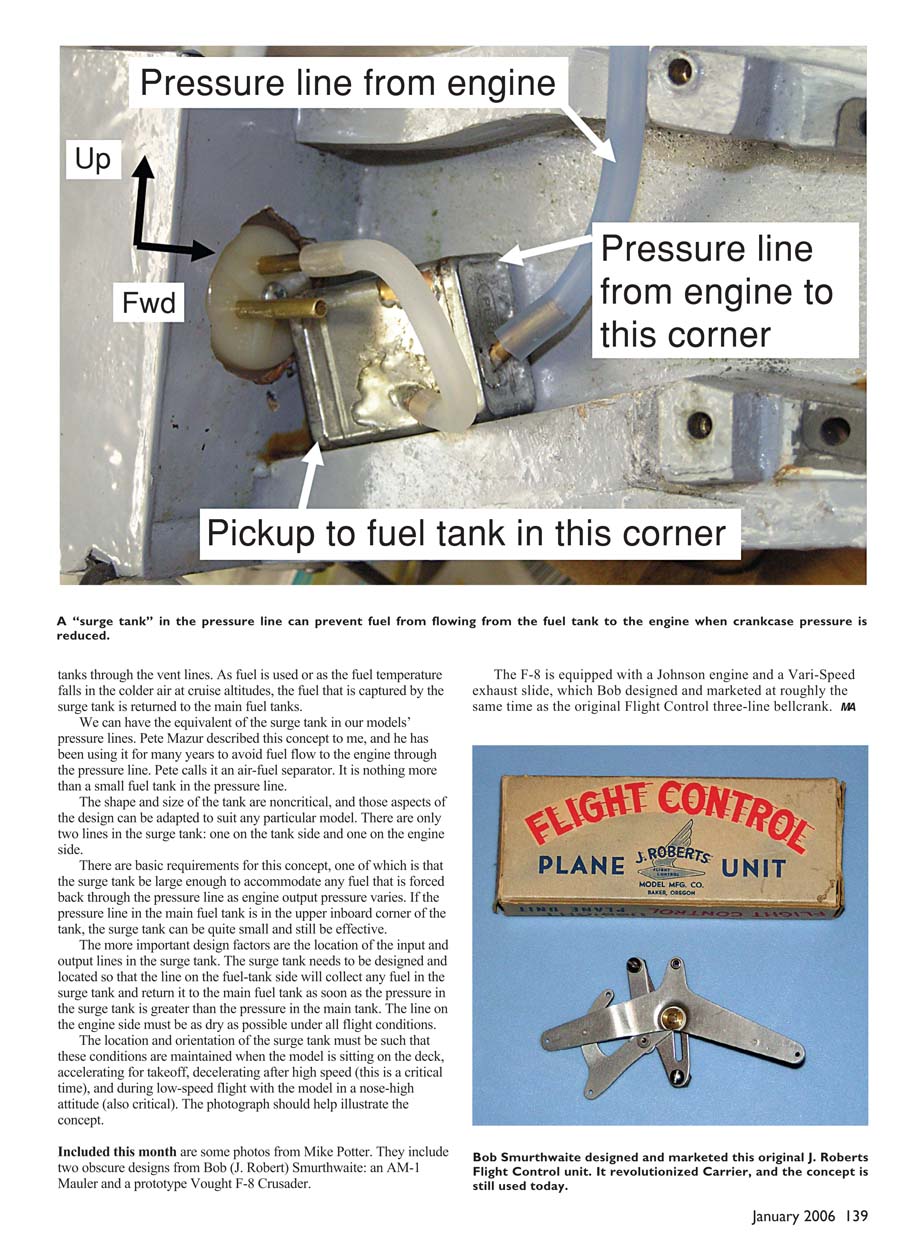 surge tank is returned to the main fuel tanks.