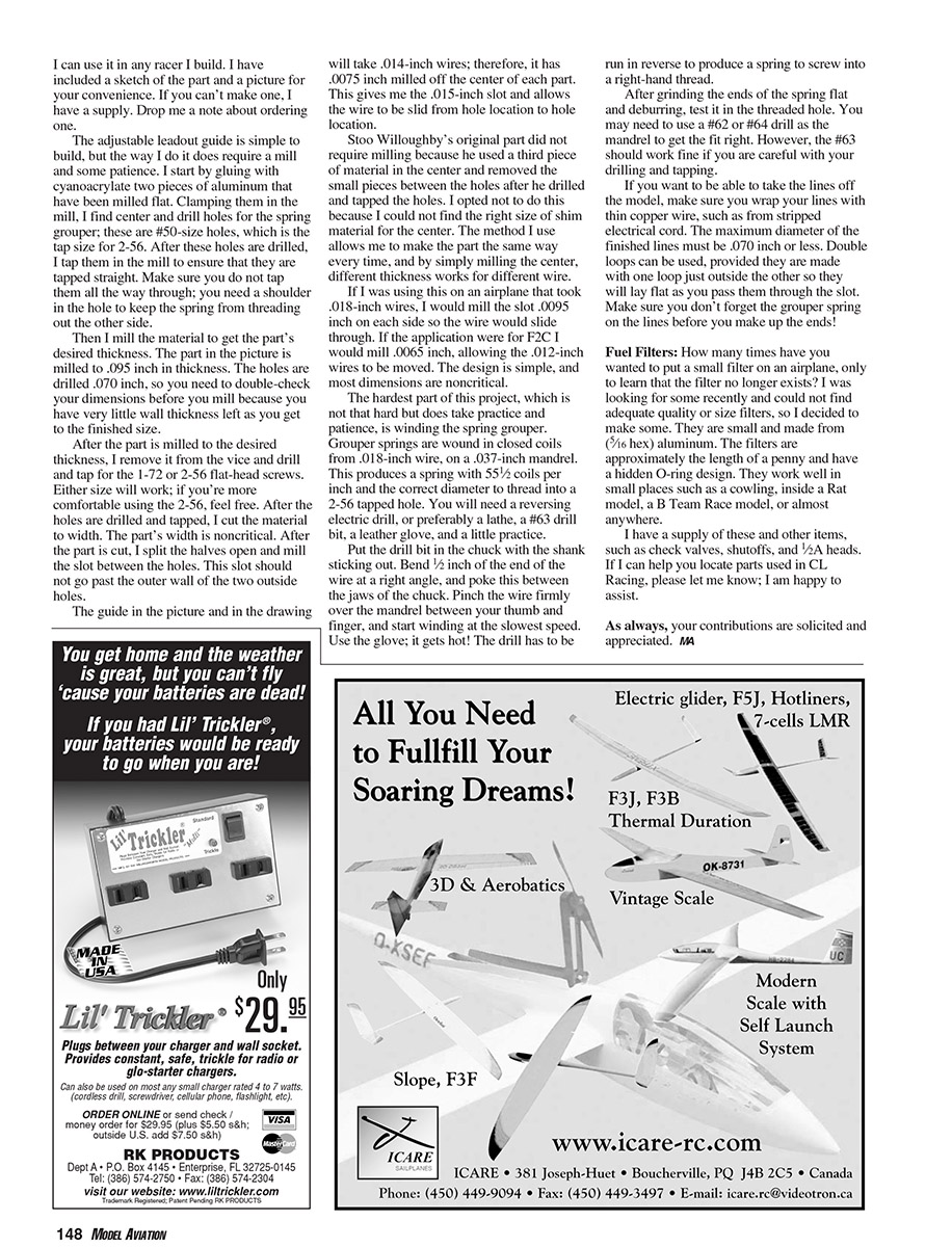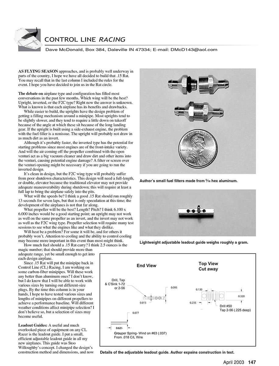 Author’s small fuel filters made from 5⁄16 hex aluminum.