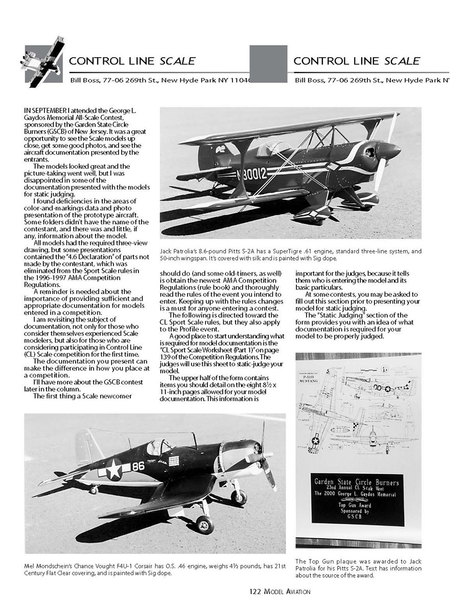 Mel Mondschein’s Chance Vought F4U-1 Corsair has O.S. .46 engine, weighs 41⁄2