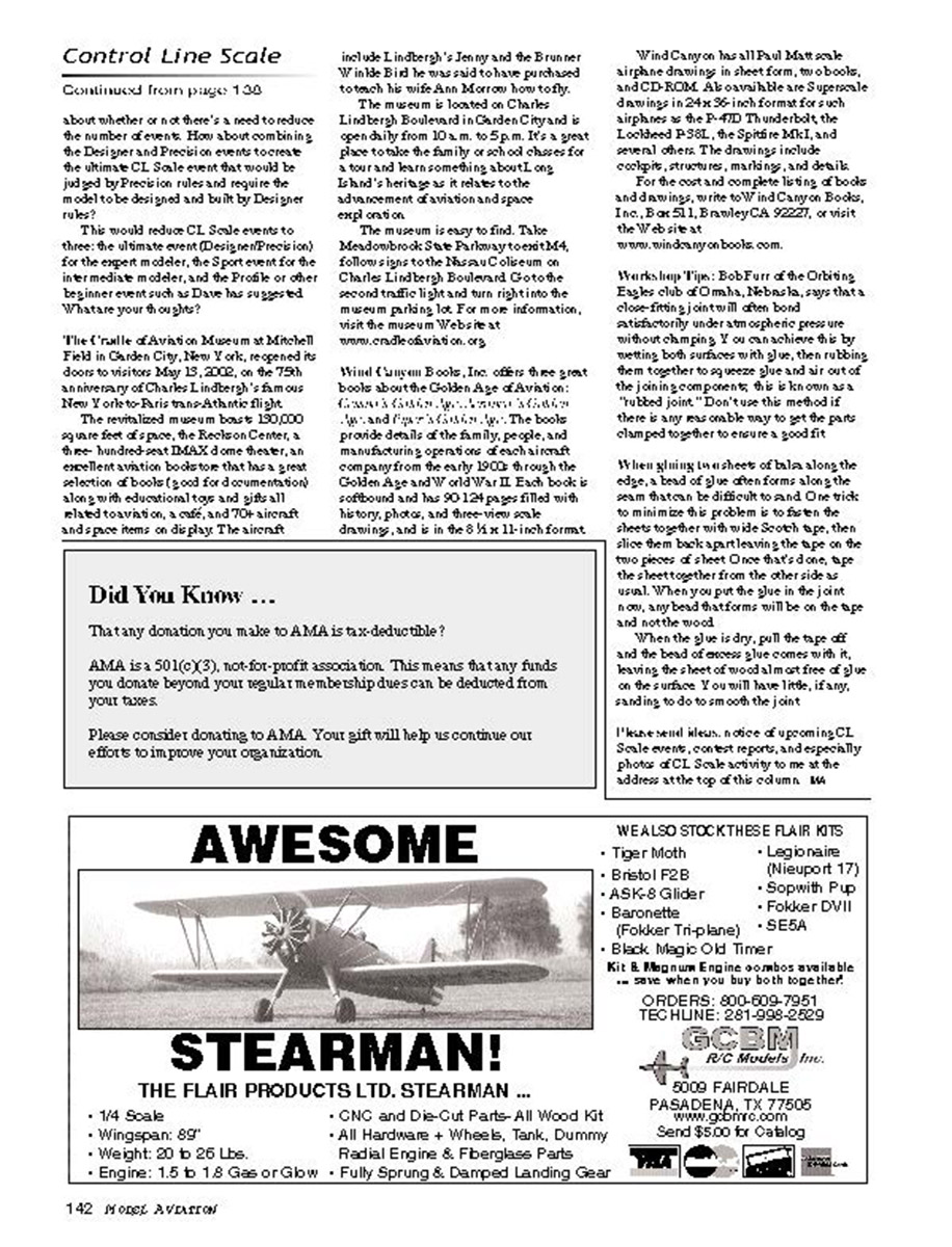 142 M ODEL AVIATION