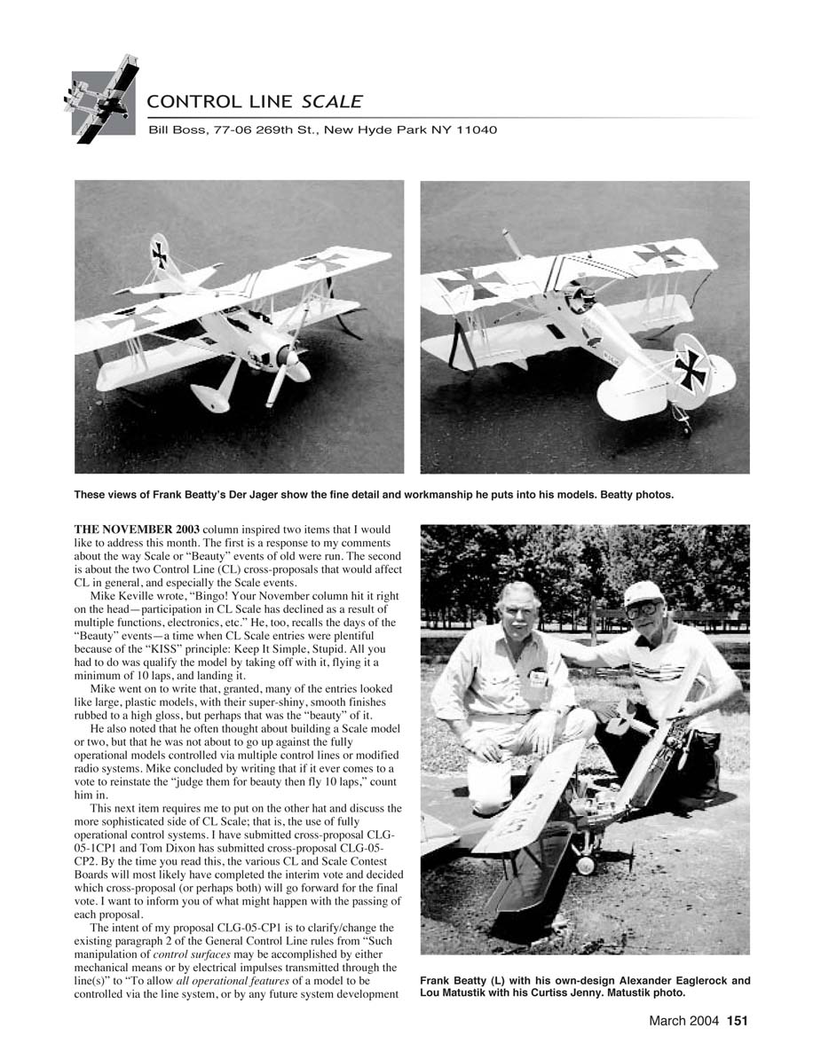 an O.S. Max .40. Lou’s aircraft is a Curtiss