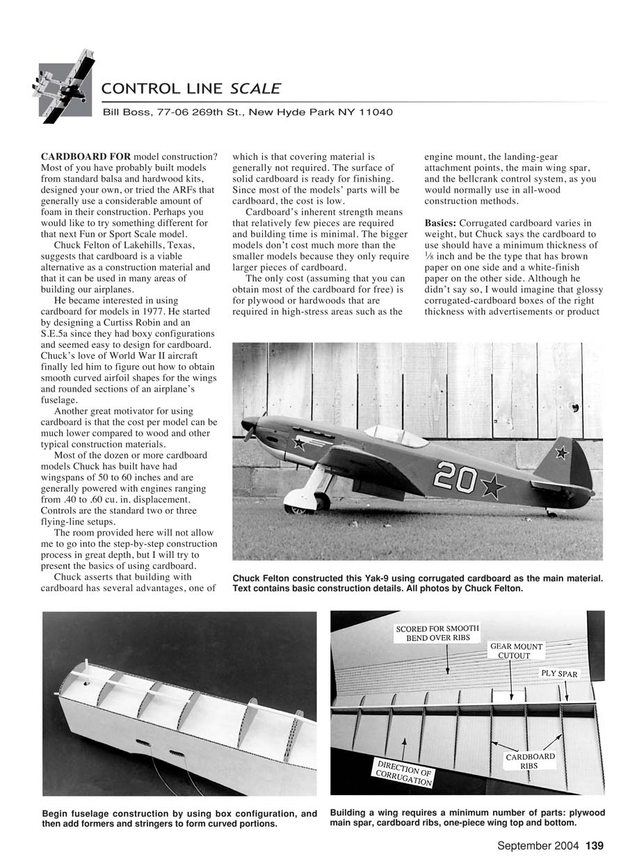 Chuck Felton constructed this Yak-9 using corrugated cardboard as the main material.