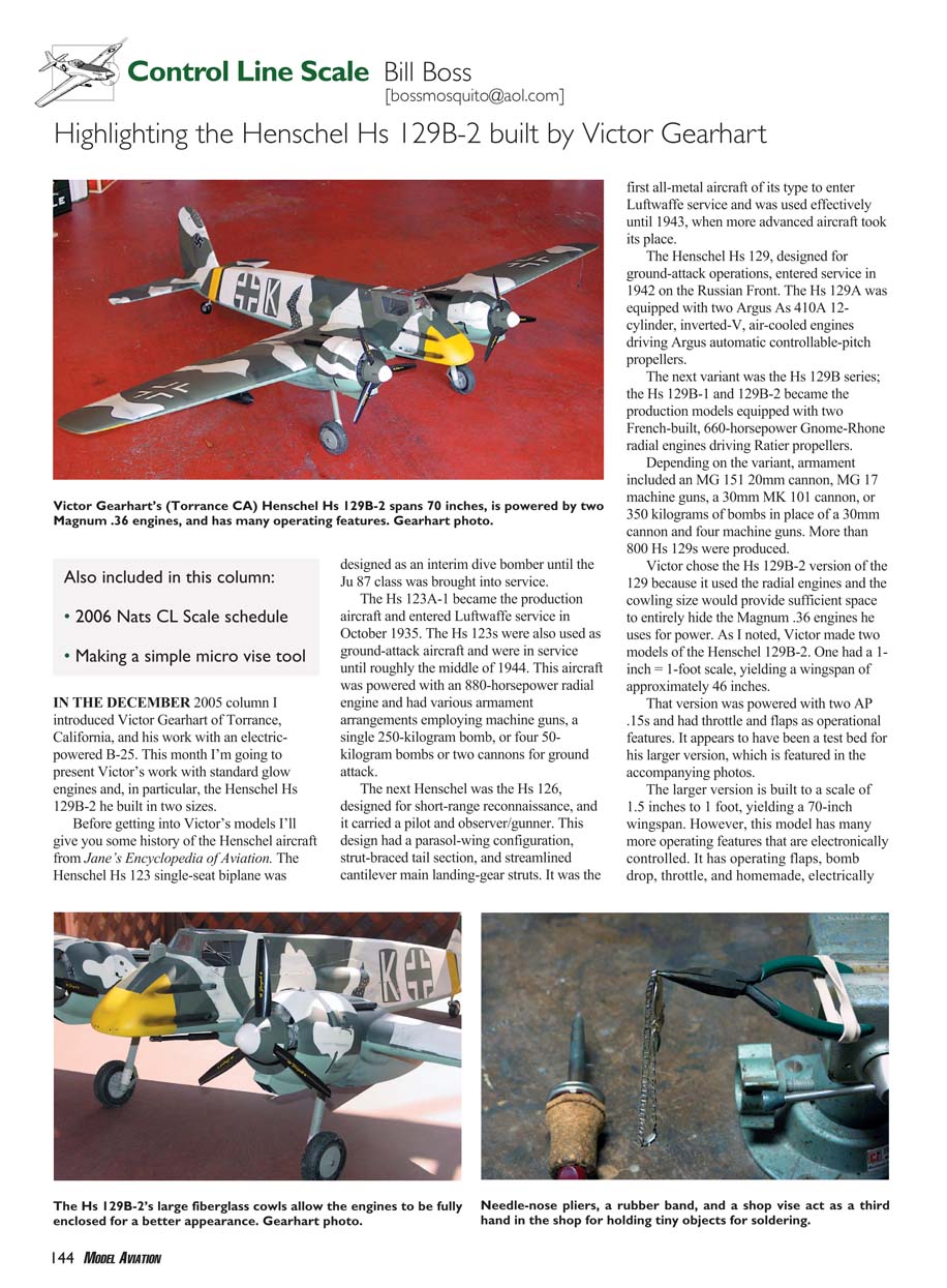 Victor Gearhart’s (Torrance CA) Henschel Hs 129B-2 spans 70 inches, is powered by two