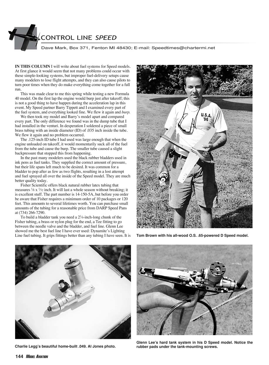 IN THIS COLUMN I will write about fuel systems for Speed models.