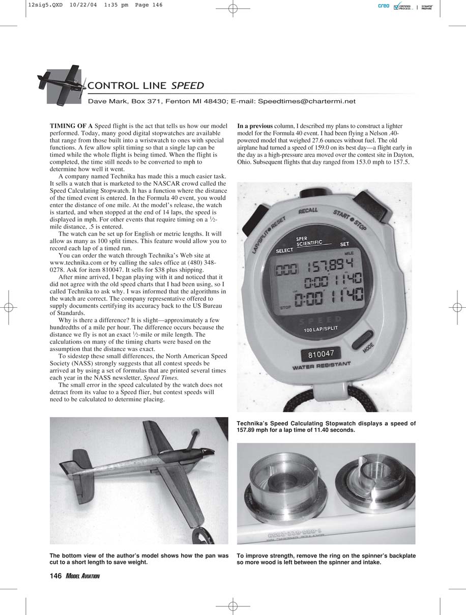 Dave Mark, Box 371, Fenton MI 48430; E-mail: Speedtimes@chartermi.net