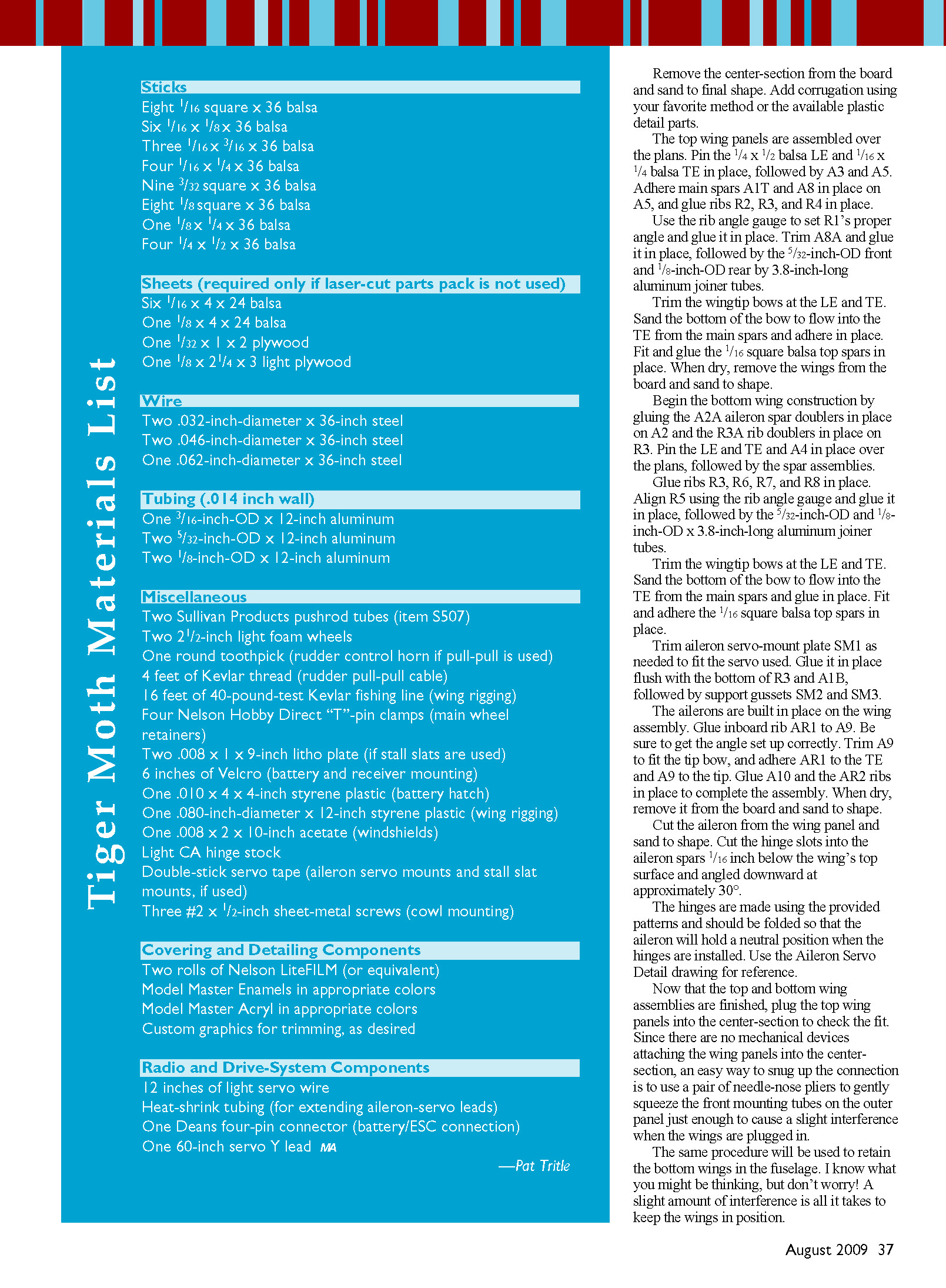 two laminations of 1/16 x 3/16 balsa.