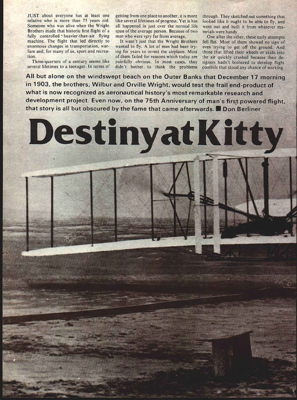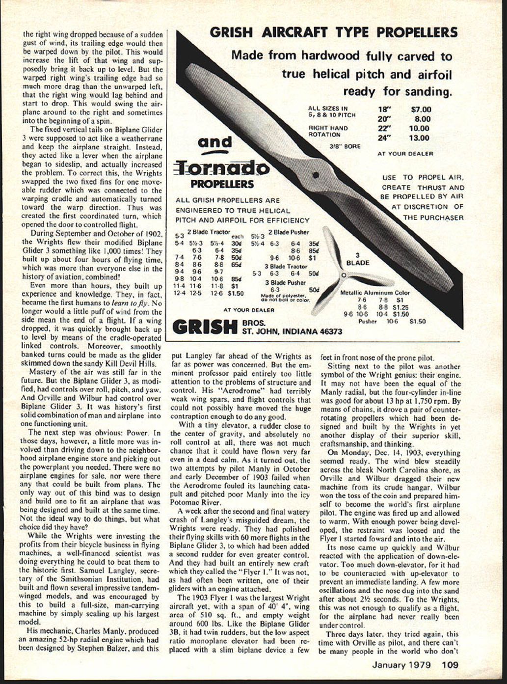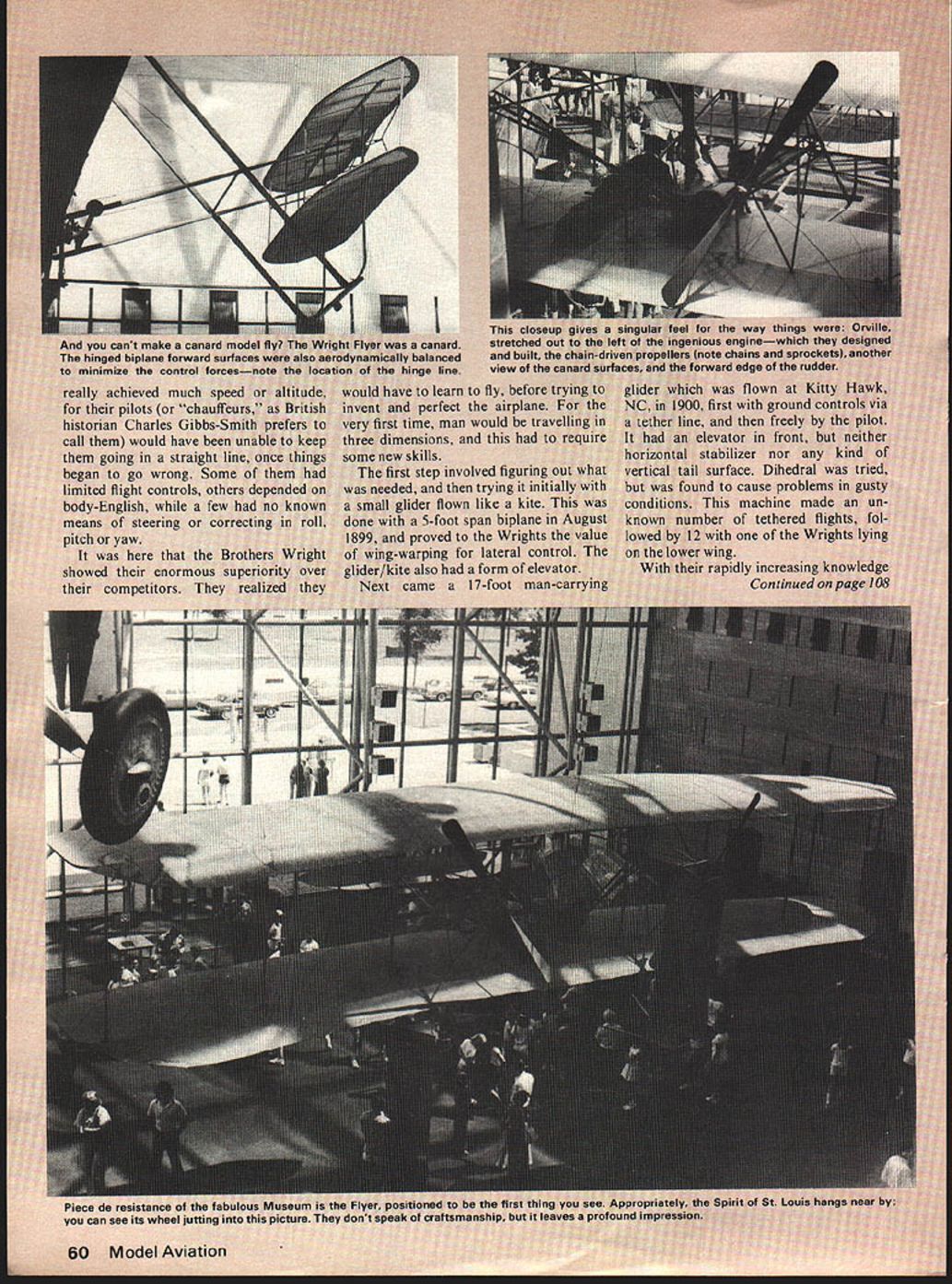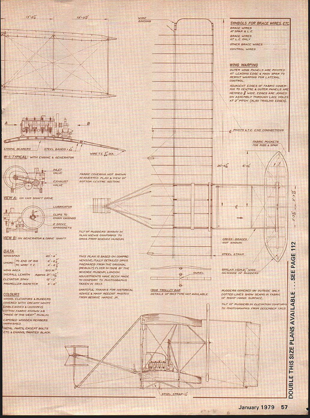 JUST about everyone has least relative 75 years old Someone alive Wright Brothers made historic first flight fully controlled heavier-than-air flying machine flight led directly enormous changes transportation war fare us sport recrea tion Three-quarters ci several lifetimes teei alone 1903 what now story getting place another like several lifetimes progress Yet happened just over th span average personi men vry far fr wasnt just w wanted fly lot years invent th failed reasons obvious mi tother think n lle Wr Litical 75th fame tha sketc like oughi ut built hand after Most o ing ORVILLE WRIGHTWILBUR WRIGHT wrong art over ilbur oth NO OCR TEXT SYA IDOL1 &YACt W AT SPAR 4 EWIR r ONL R BRACC WIRCS WARPING ANALS 7 / ____iT EI 906 TRC DCTAILS 7 CL/P S/PPORT -J PLA1r CL/P D i N. 8 COUNTER WOODSCAEWS APPLICATIONS S7C/T CLIP M NA/N SPAR wiN STRL/TE -7 CLLCR STAY 4 ott srnurs SKID PIX/NG NA/N SPAR sorrc STEEL_SOLDERE DIA NOLES CL/P t 5K ELEVATIONS OrAL trr.i4tAtn arws C OTNEa 58 S7TEL ST PtCCCS fITTINGS fo STtfL aRAZED SMarT uaaRW4 ivor 4 807 5SOLDERED IV/RE PULLEY ot SNAPT RR 0 Co z -J C w N 8 LI UId no sm no 0 n won trgely tor c couli i try Henson ugh ionopla k 0n4 pa nave fl nothing U / IThis nardstretc incodandb mlineVIOW Ut reallylearn fly befoi rfect airplan man would ti ns 5 step involved figui trying r flown like a 5-foot span bir moved Lrping lateral toa form e theire a17-foot I 60 Mc U R T S S V PLANS BY RALPH BECK NOW AVAILABLE FROM lloaoe ENT CORP P0 BOX 9641 SAN DIEGO CALIFORNIA 92109 SEND lX FOR COMPLETE CATALOG OF AIRCRAFT HARDWARE & ACCESSORIESPLUS DESCRIPTIVE jENNY BROCHURE 1931 Gee Bee Super Sportster 1SIe IGeneral Arrange ICatalog 25c w T By1 Imont Drawing Bill Given ERNISTIC MODELS PO BOX 6974 ALBUO NM 87197 placement rather firmly tixed wing sockets mounted motor stick angular difference cidence between wing horizontal stabilizer Most fliers move wing posts up down sockets set wing cidence works quite well However few disadvantages moving wing posts least being quandry set posts first test flight fliers have found models have much repeatable performance wing posts cut proper length bottom out bottom sockets work Note Fig bottom socket has plug balsa glued firmly bottom motor stick Actually plug sharpened can extend out bot tom motor stick glued trimmed flush very im portant bottom end socket anchored motor sticks natural torsion resistance helps stabilize wings tendency twist under flight loads post fully inserted socket part available torsional leverage being used possibility post can slip out socket under load So instead making tiny marks post during test flying remember right mark cut off tiny bit longer post finger nail clippers ideal fully insert post again After flight trim finished wing posts automatically set up almost perfect flight adjustment next session What need change least two ways change incidence after cutting posts length Obviously minor trimming can done next session However too changes needed wing posts growth will appear stunted Stan Chilton uses variable incidence stabilizer models allows very fine tuning flight trim Stans setup doubly useful can seen photo Although sta bilizer bracing wires show photo leading edge rudder ex tends through stab about 11/2 inches serves bracing post also very close study photo shows tiny paper socket end tail boom post/leading edge going through socket tail boom shorter therefore lighter stabilizer incidence easily adjustable Take Close Look eyesight 20-20 glasses poor light indoor sites makes hard see tiny details models way im prove vision use magnifier such worn Fry Rodemsky photo Like other fliers Fry uses rubber 0-rings motors allow easier handling better torque control see section 0-rings previous column p 55 July 78 MA Sometimes 0-rings hard see proper hookup Flying Planned Aug 78 MA reported indoor activity throughout Midwest several other areas hold reg ular indoor sessions contests during Fall Winter months longest stretch activity occurs Miami Flor ida using Goodyear hangar Opa Locka Airport Miami Contact Dr John Martin 3227 Darwin St Miami FL 33133 details Also Ron Wil liams 1364 Lexington Ave New York NY 10028 has managed establish regular flying sessions Low Library Rotunda Columbia University New York City Another regular activity area Glastonbury Connecticut George Armstead ramrods monthly ses sions Contact George 89 Harvest Lane Glastonbury CT 06037 specific infor mation Visit groups area fly regularly live close enough---they nice friendly people Bud Tenny PO Box 545 Richardson TX 75080 FF Sport/Scale/Warner continued page 53 tains Smithsonians aeroplanes 3-view form $275 Title Aircraft National Air Space Museum Check money orders can made out above museum c/o Smithsonian Institution Washington DC 20566 nine-inch Peanut controversy has drawn fire sides com batants sending remote 3-views planes built nine-inch fuse lage would qualify Jumbo Nothing daunted dug up weirdo qualifies under present 13 wing span rule about 22 length around 250 sq descendant boxkite John Mar tins Boxmoth proves nothing except wing span alone doth make Pea nut Its spirit counts Frank Scott Dayton Buzzin Buzzards says Lets leave rules alone Ed Hopkins Fillmore CA suggests uniform 1/24 scale Flightmaster James Dean thinks area rule would about idea called Mooney Judging after its originator Planes ranked best worst point best 2 points next best etc score added flight placing makes low-score wins situation CD contestants agreeing before hand whether ties broken scale flying scores judges bound set ridiculous constricting rules can place Fike Lacey Forbes-Arnold right down line An interesting alternative takes some time tabulate having contestant rate planes giving hers top score possible Add em up average em No complaints Most people have pretty good idea what Peanut Let rest fly AMA rubber scale Manhat tan Cabin Bill Warner 423-C San Vicente Blvd. Santa Monica CA 90402 Wright Flight/Berliner continued page 60 basics flight control mov