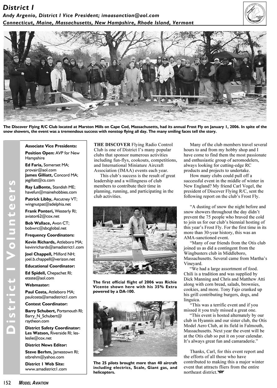 The Discover Flying R/C Club located at Marston Mills on Cape Cod, Massachusetts, had its annual Frost Fly on January 1, 2006. In spite of the