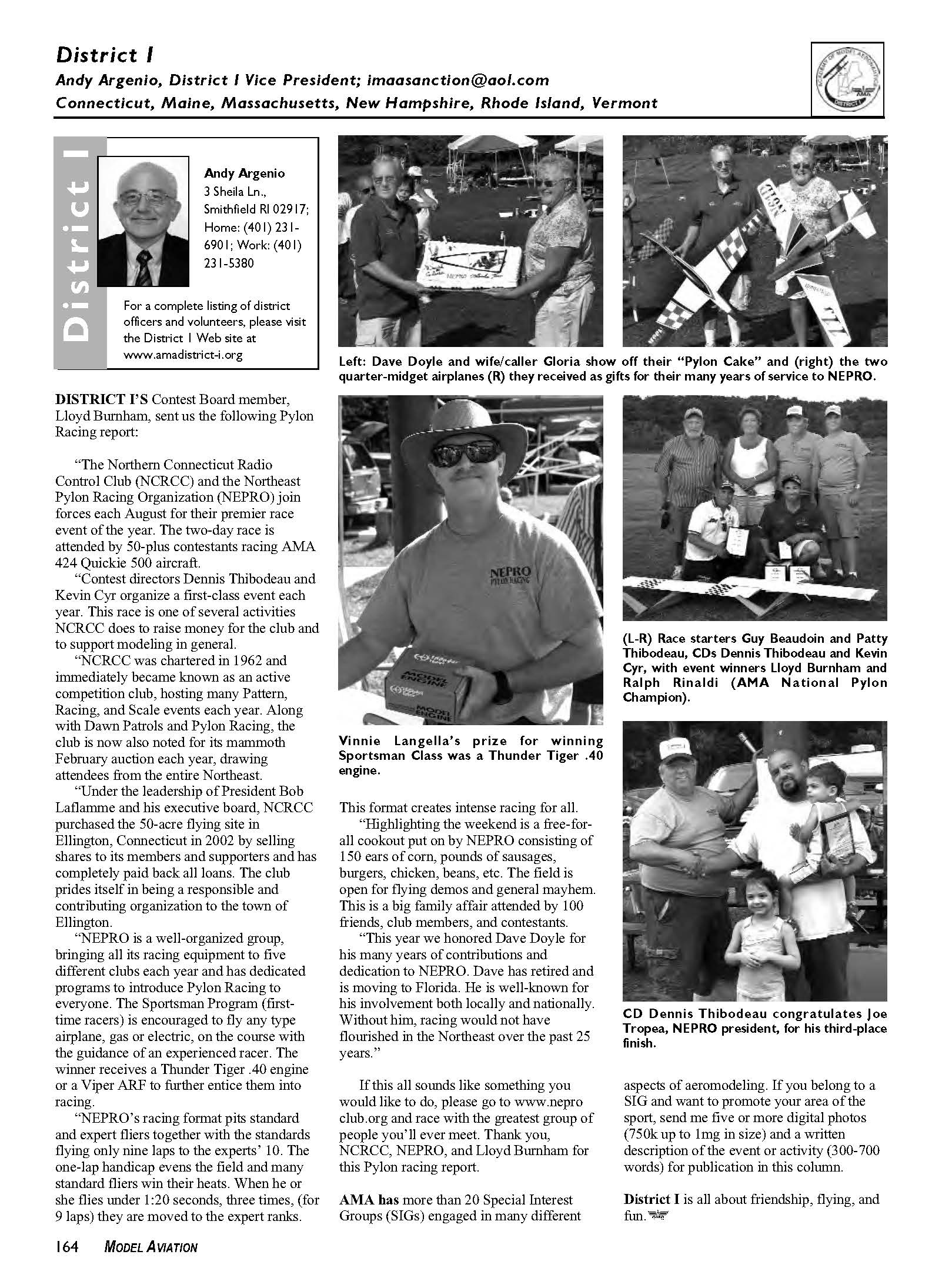 Andy Argenio, District I Vice President; imaasanction@aol.com