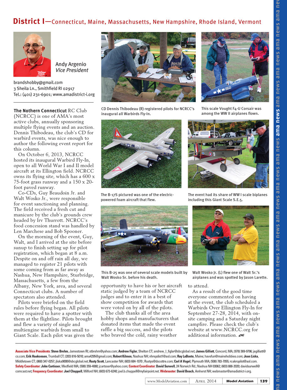THE NORTHERN CONNECTICUT RC Club (NCRCC) is one of AMA’s most active clubs, annually sponsoring multiple flying events and an auction. Dennis Thibodeau, the club’s CD for warbird events, was nice enough to author the following event report for this column.