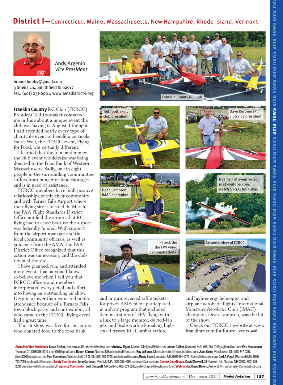 FRANKLIN COUNTY RC CLUB (FCRCC) President Ted Toothmaker contacted me in June about a unique event the club was having in August. I thought I had just about attended every type of charitable event to benefit a particular cause. Well, the FCRCC event, Flying for Food, was certainly different.