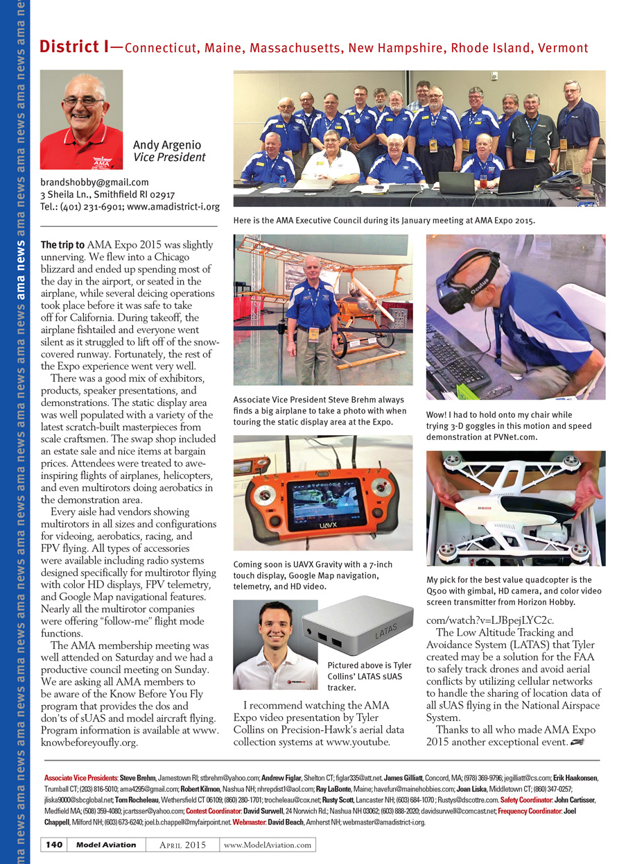 The AMA membership meeting was well attended on Saturday and we had a productive council meeting on Sunday. We are asking all AMA members to be aware of the Know Before You Fly program that provides the dos and don’ts of sUAS and model aircraft flying. Program information is available at www.knowbeforeyoufly.org.