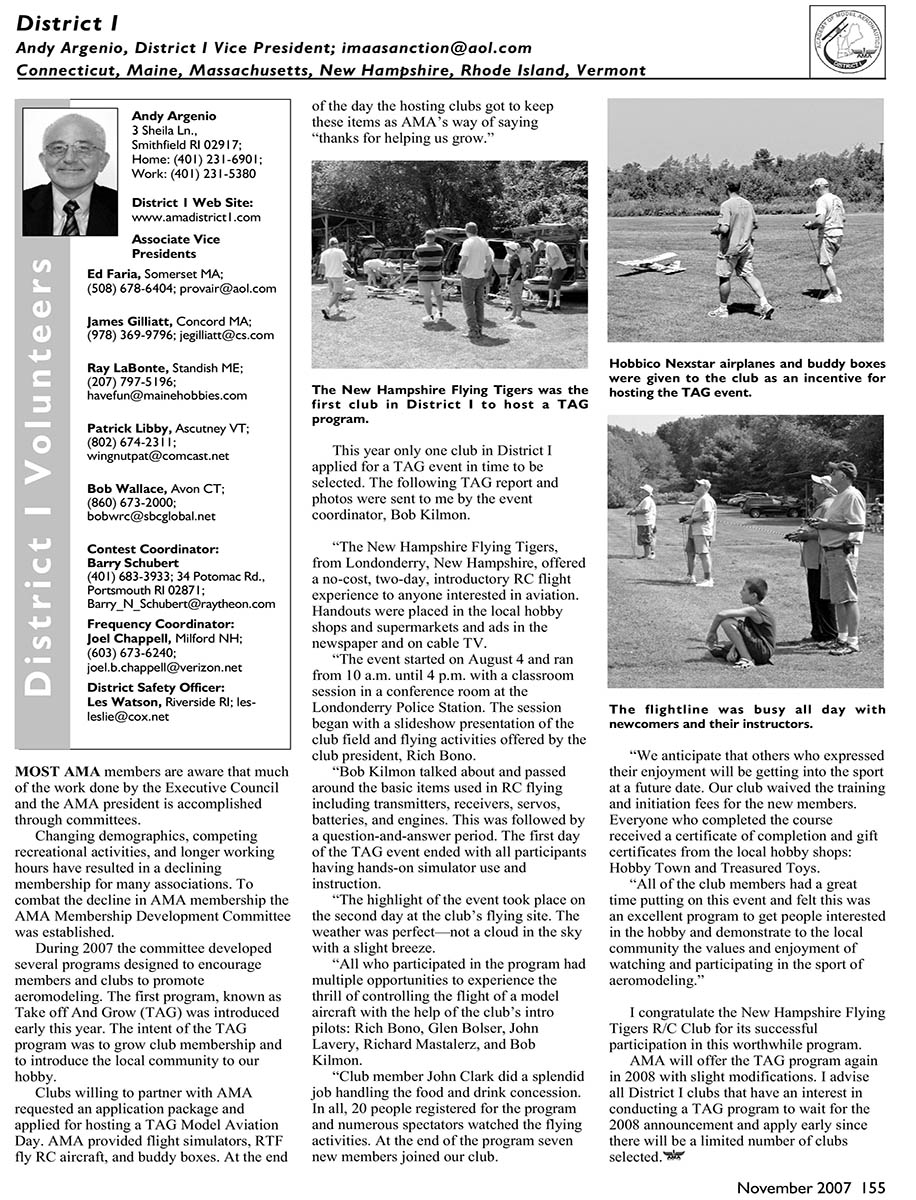 Andy Argenio, District I Vice President; imaasanction@aol.com