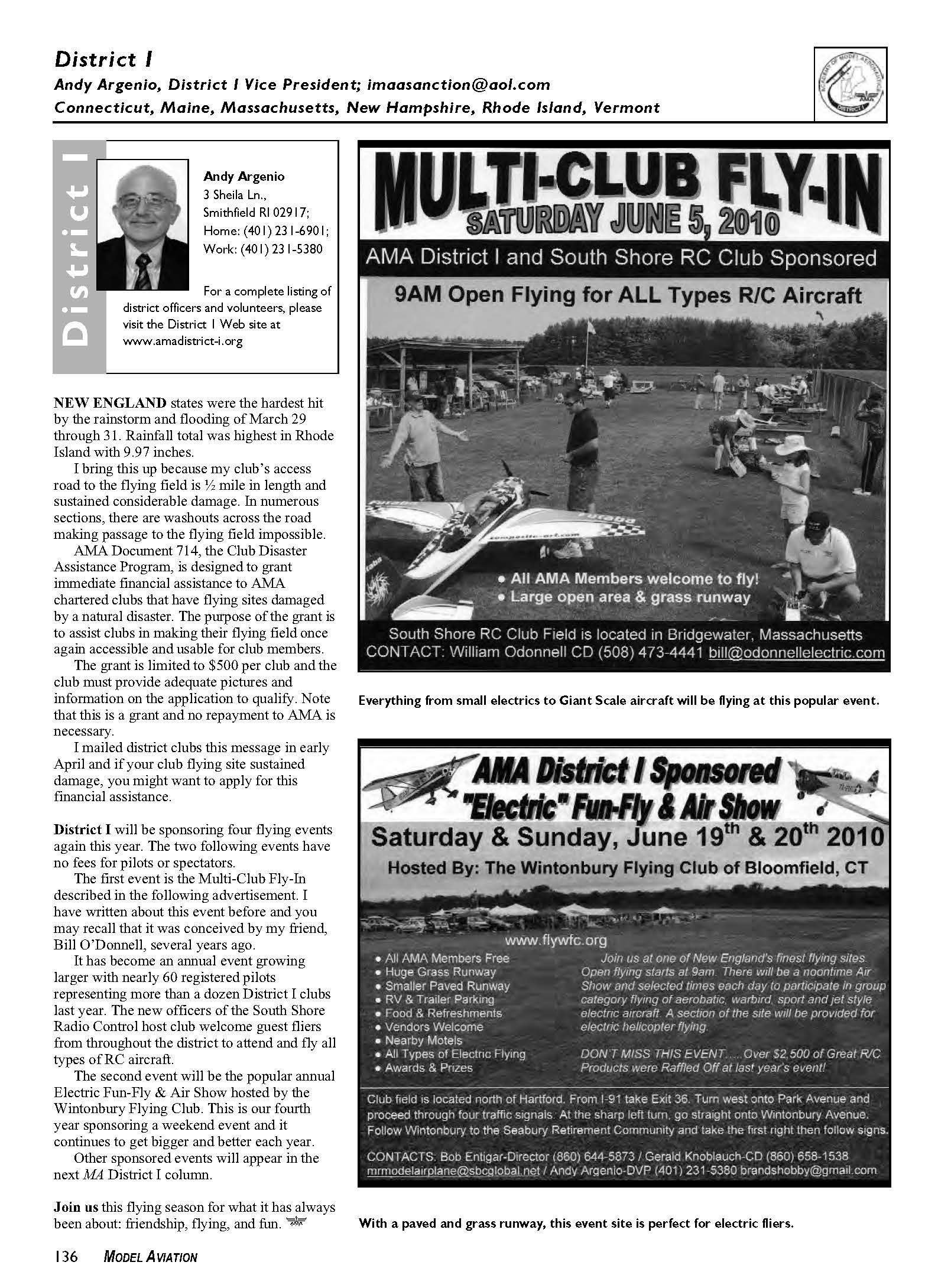 Andy Argenio, District I Vice President; imaasanction@aol.com