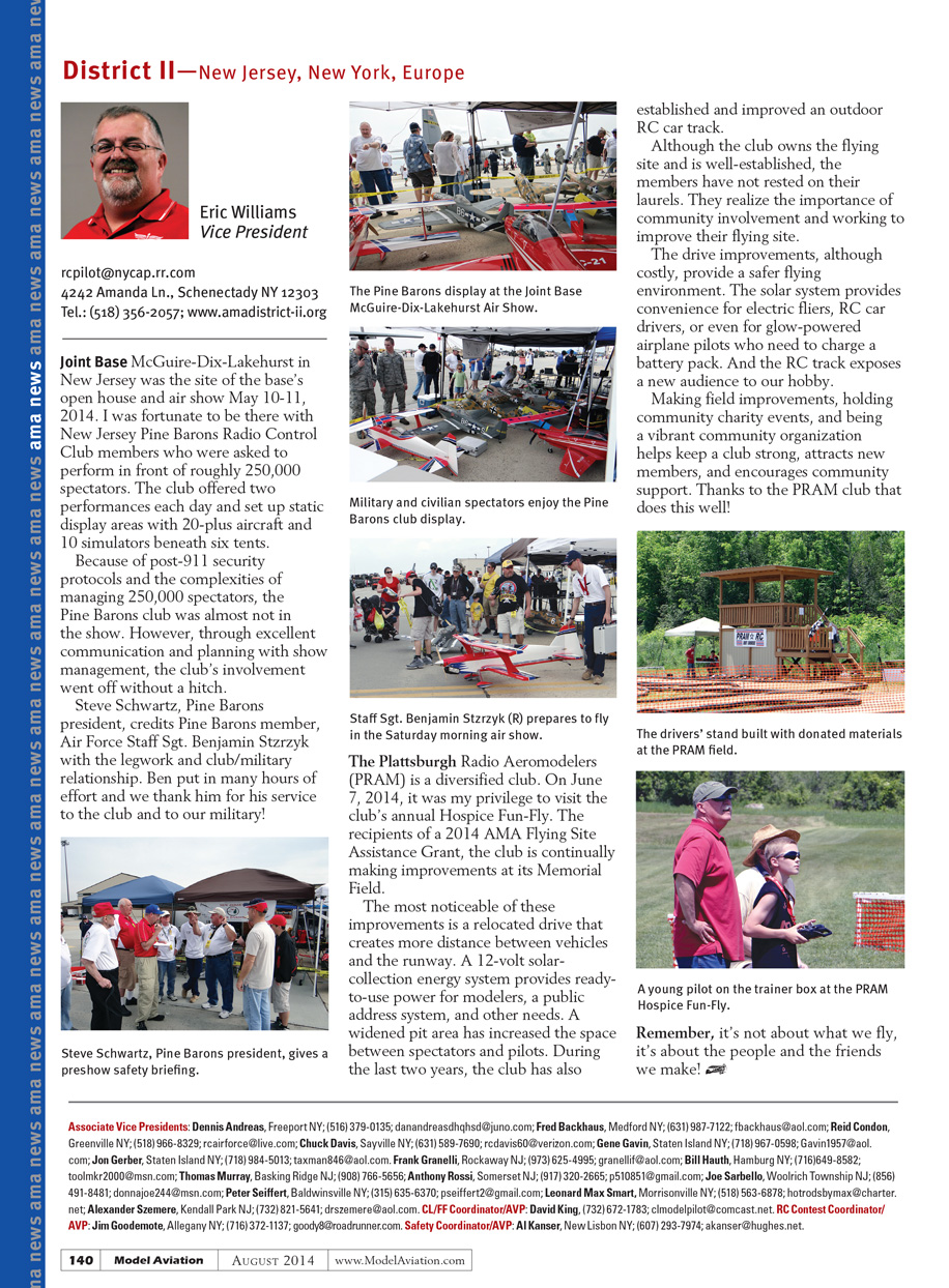 Making field improvements, holding community charity events, and being a vibrant community organization helps keep your club strong, attracts new club members, and brings support from the community. Thanks to the Plattsburgh Radio Aeromodelers who do this well!