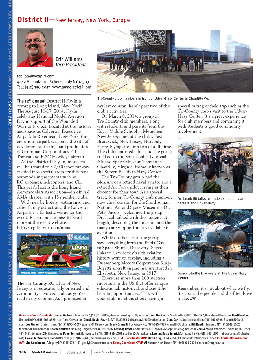 The Tri-County RC Club of New Jersey is an educationally oriented and community-involved club, as you’ve read in my column. As I promised in my last column, here’s part two of the club’s activities.
