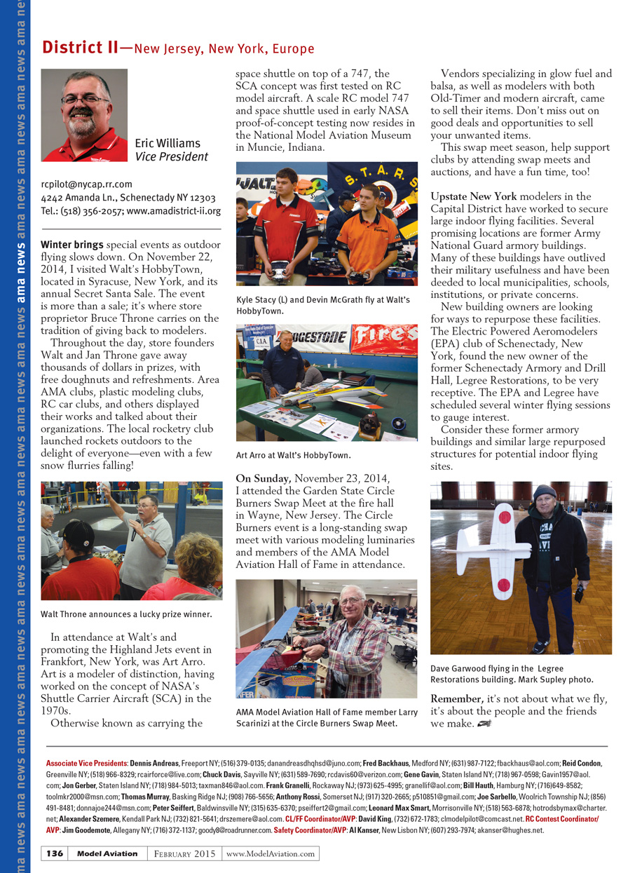 New building owners are looking for ways to repurpose these facilities. The Electric Powered Aeromodelers (EPA) club of Schenectady, New York, found new owners of the former Schenectady Armory and Drill Hall, Legree Restorations, very receptive. The EPA and Legree have scheduled several winter flying sessions to gauge interest.