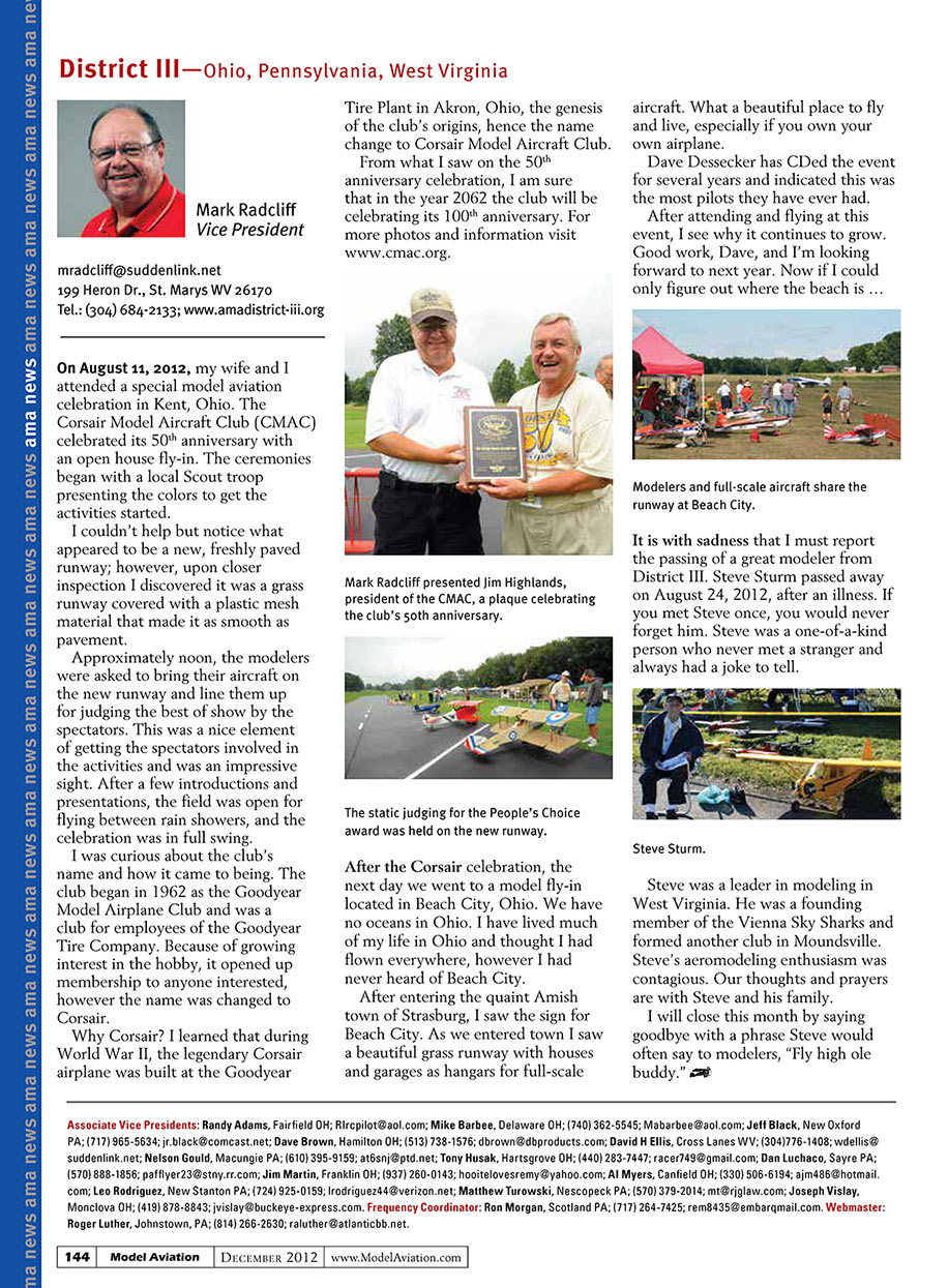 change to Corsair Model Aircraft Club.
