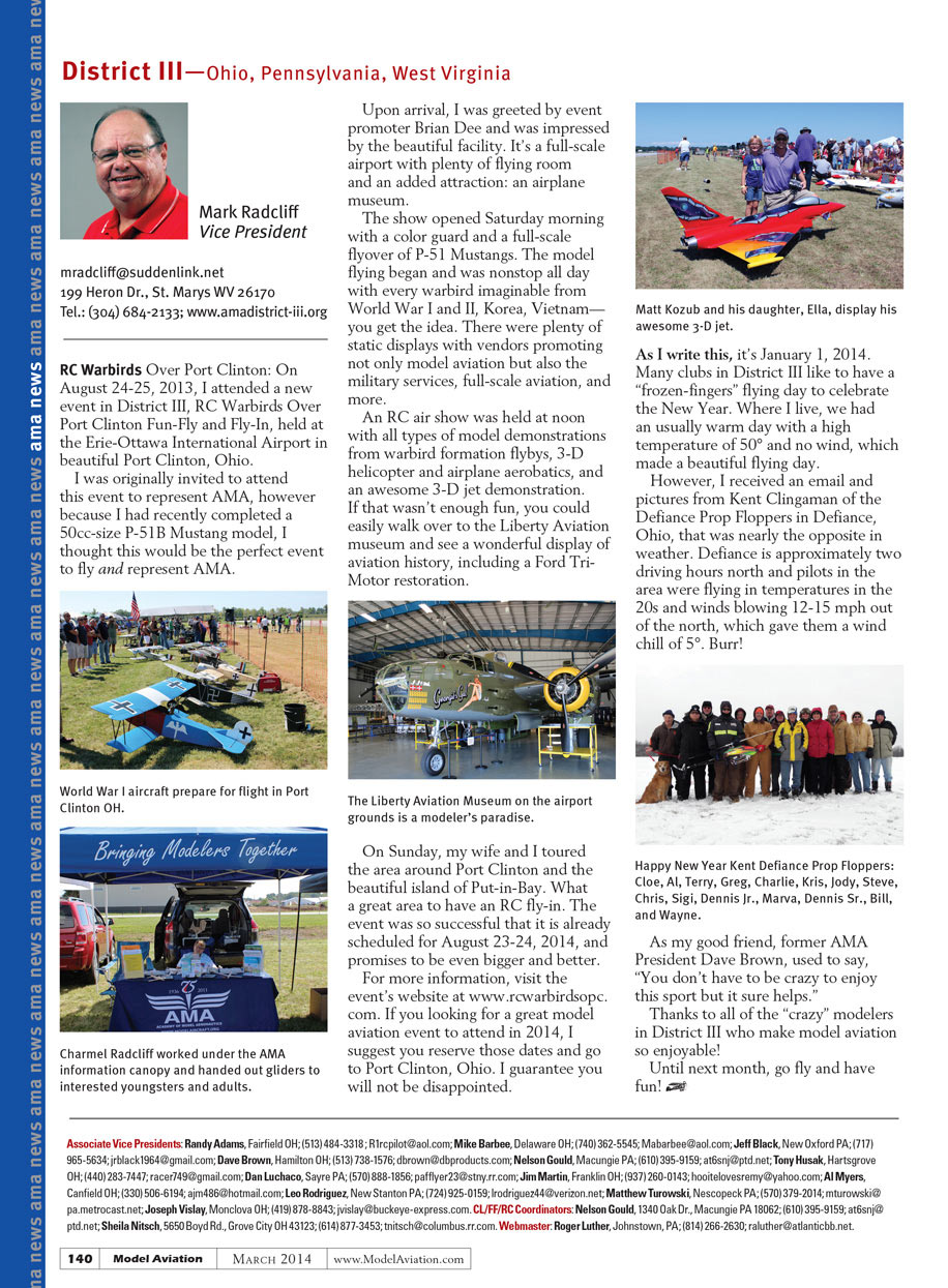As I write this, it’s January 1, 2014. Many clubs in District III like to have a “frozen-fingers” flying day to celebrate the start of the New Year. Where I live, we had an usually warm day with a high temperature of 50° with no wind, which made a beautiful flying day.