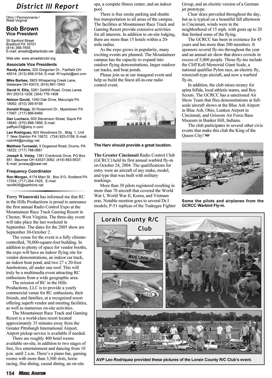 45014; (513) 858-3154; E-mail: R1rcpilot@aol.com