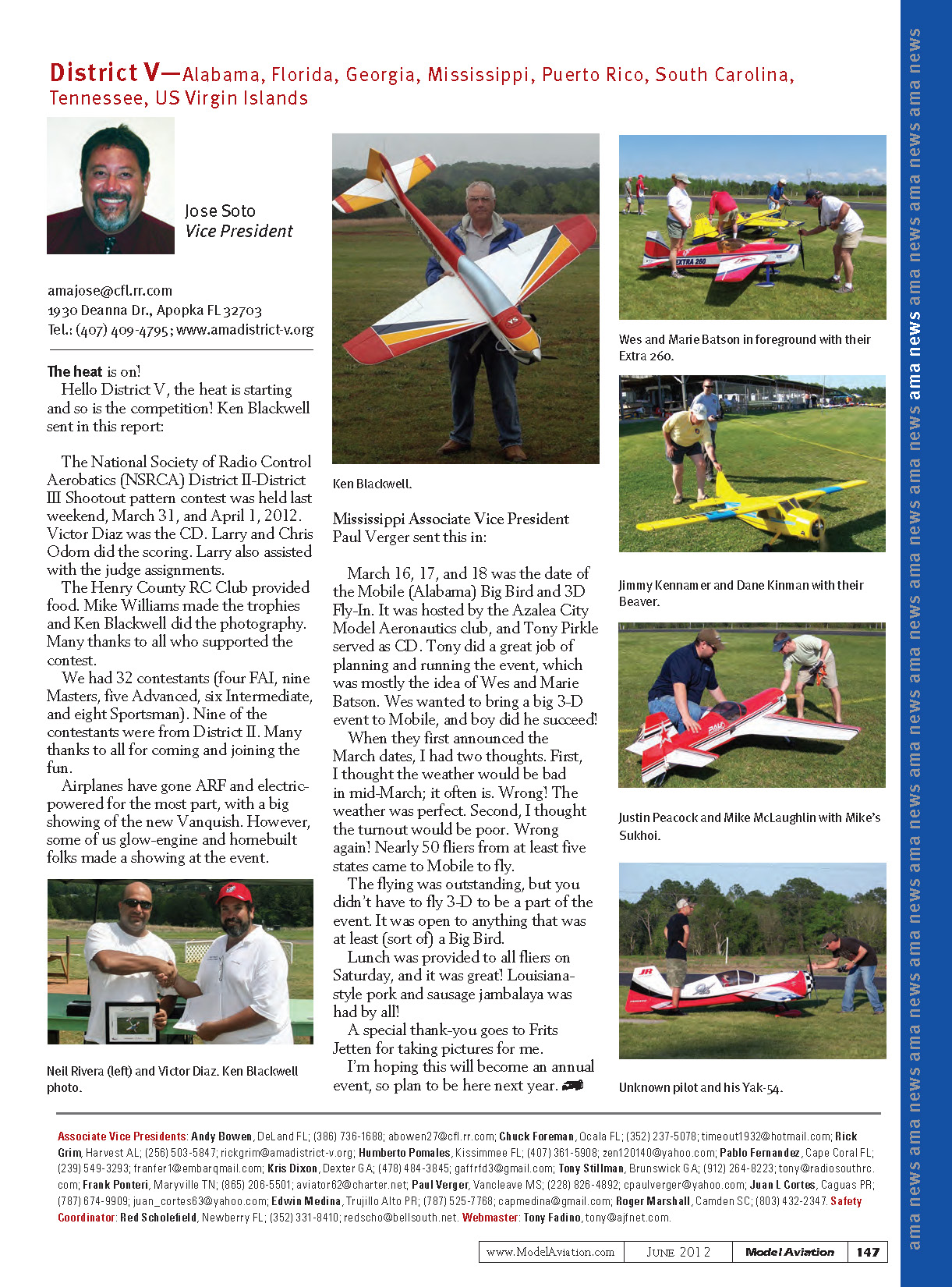 Associate Vice Presidents: Randy Adams, Fairfield OH; RIrcpilot@aol.com; Mike Barbee, Delaware OH; (740) 362-5545; Mabarbee@aol.com; Jeff Black, New Oxford