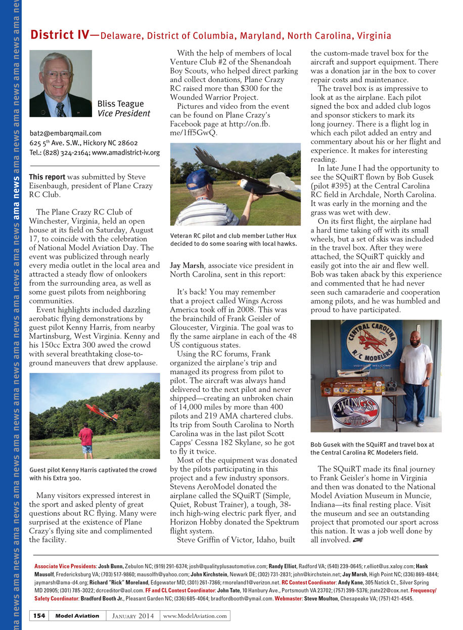 This report was submitted by Steve Eisenbaugh, president of Plane Crazy RC Club.