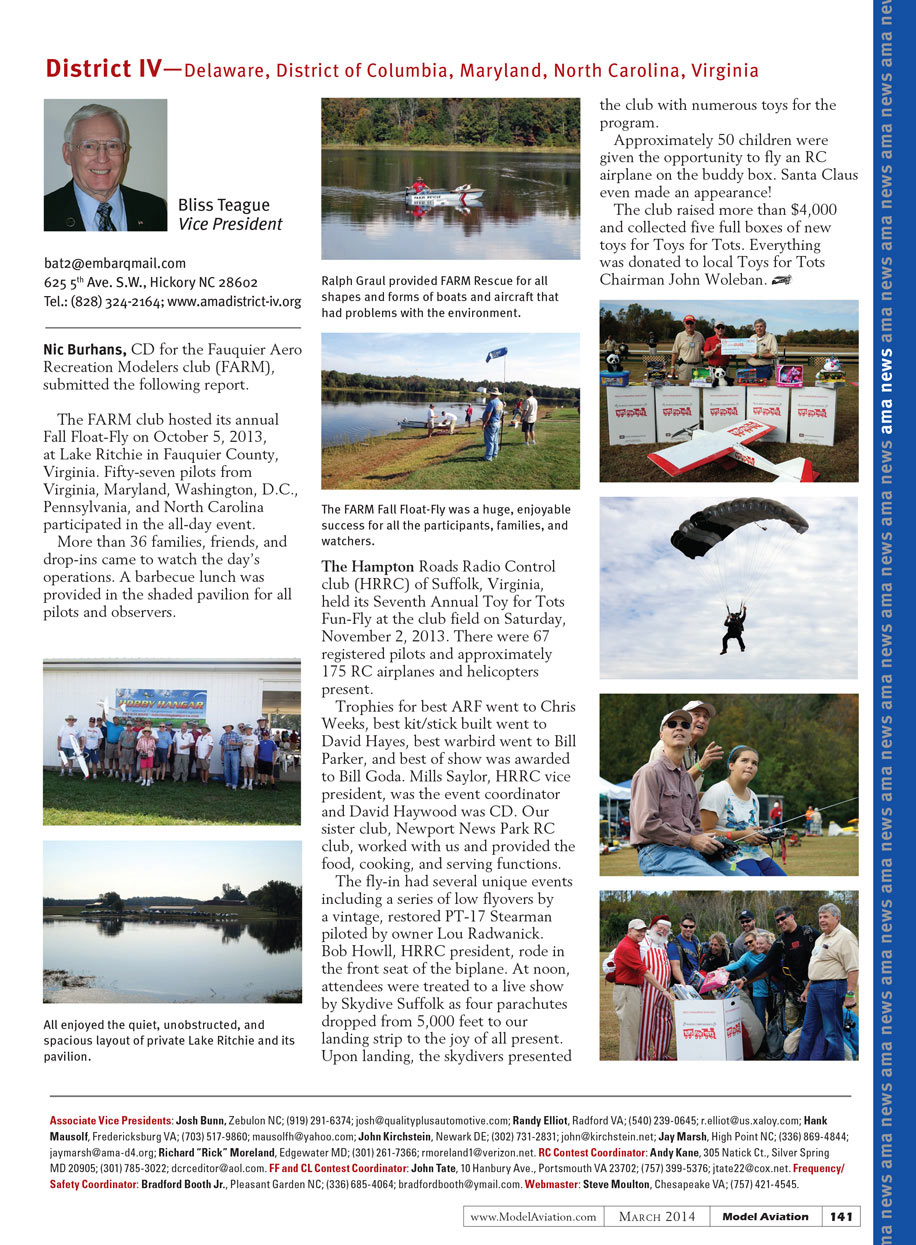 Nic Burhans, CD for the Fauquier Aero Recreation Modelers club (FARM), submitted the following report.