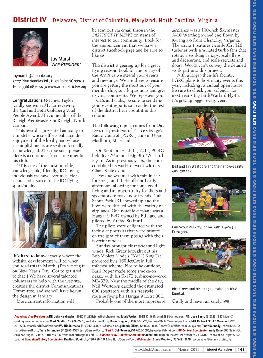 The district is gearing up for a great flying season. Seek out me or any of the AVPs as we attend your events and meetings. We are there to ensure you are getting the most out of your membership, so ask questions and give us your comments. We represent you.