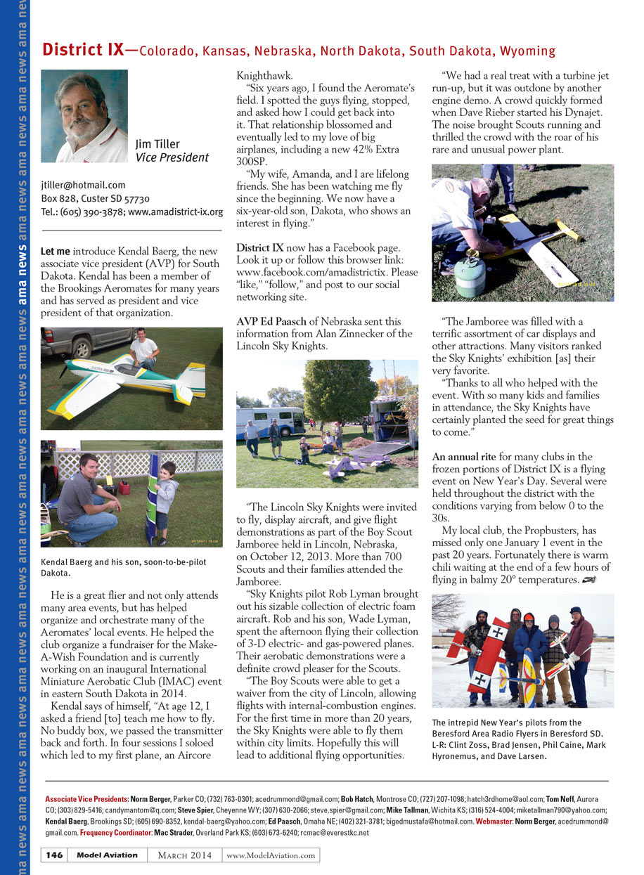Let me introduce Kendal Baerg, the new associate vice president (AVP) for South Dakota. Kendal has been a member of the Brookings Aeromates for many years and has served as president and vice president of that organization.