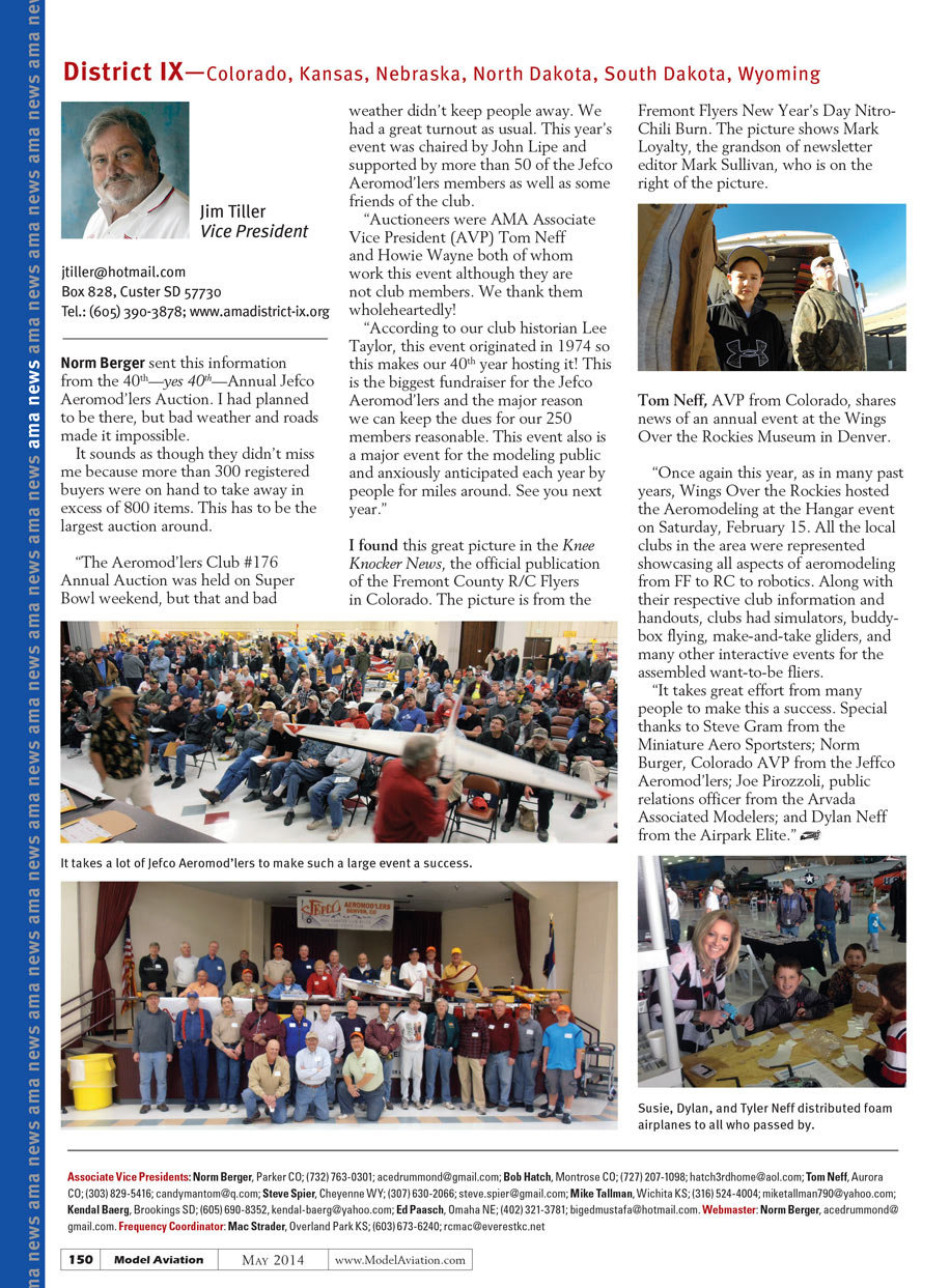 “It takes great effort from many people to make this a success. Special thanks to Steve Gram from the Miniature Aero Sportsters; Norm Burger, Colorado AVP from the Jeffco Aeromod’lers; Joe Pirozzoli, public relations officer from the Arvada Associated Modelers; and Dylan Neff from the Airpark Elite.”