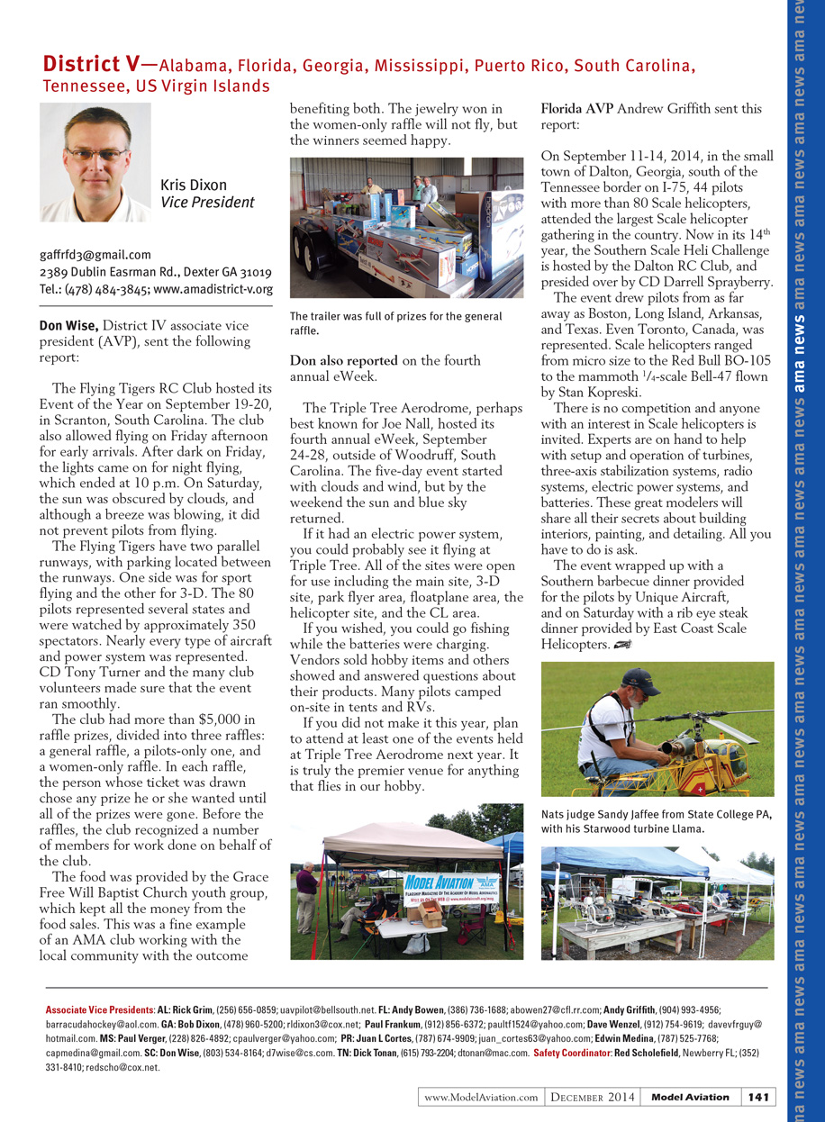 On September 11-14, 2014, in the small town of Dalton, Georgia, south of the Tennessee border on I-75, 44 pilots with more than 80 Scale helicopters, attended the largest Scale helicopter gathering in the country. Now in its 14th year, the Southern Scale Heli Challenge is hosted by the Dalton RC Club, and presided over by CD Darrell Sprayberry.