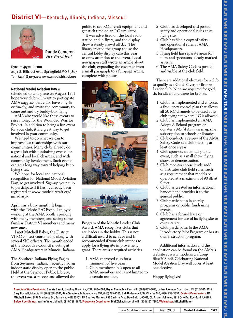Gary Bussell, Muncie IN; (765) 288-3541; Jim Cianciolo; Independence MO; (816) 795-7382; Bob Underwood, St. Charles MO; (636) 939-3394. Contest Coordinators: RC