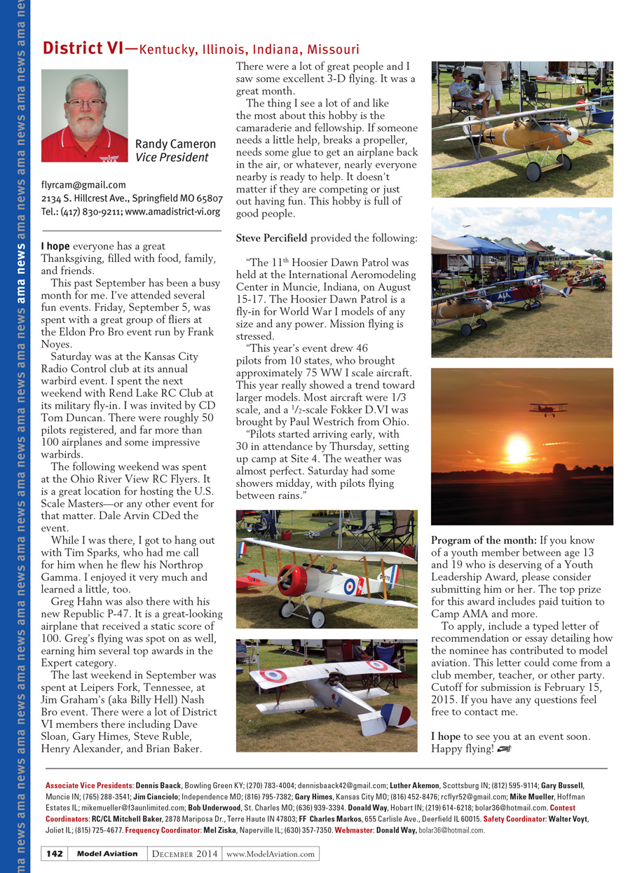 To apply, include a typed letter of recommendation or essay detailing how the nominee has contributed to model aviation. This letter could come from a club member, teacher, or other party. Cutoff for submission is February 15, 2015. If you have any questions feel free to contact me.