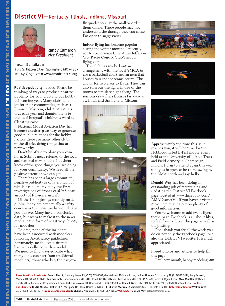 National Model Aviation Day has become another great way to generate positive publicity for the hobby. I know there are many other clubs in the district doing things that are newsworthy.