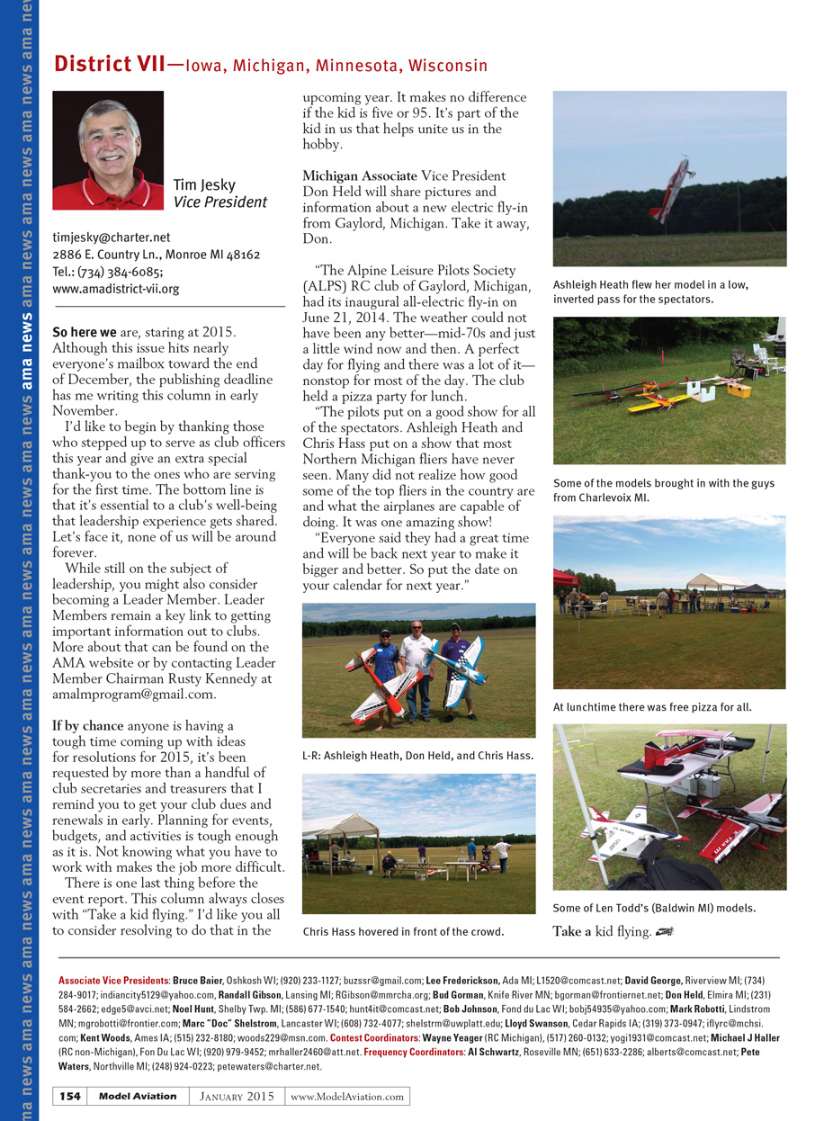While still on the subject of leadership, you might also consider becoming a Leader Member. Leader Members remain a key link to getting important information out to clubs. More about that can be found on the AMA website or contact Leader Member Chairman Rusty Kennedy at amalmprogram@gmail.com.