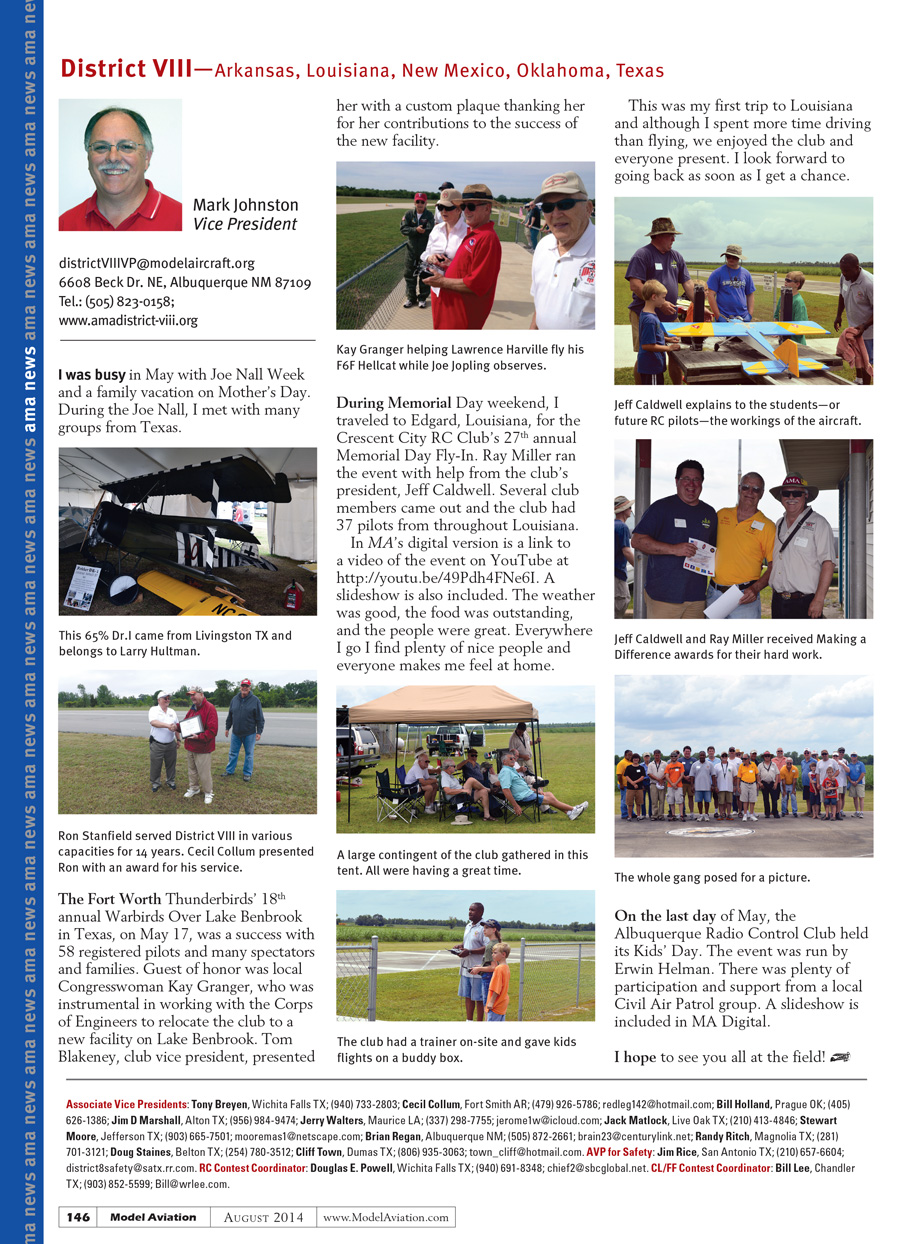 On yhe last day of May the Albuquerque Radio Control Club held its Kids’ Day. The event was run by Erwin Helman. They had lots of participation and had support from a local Civil Air Patrol group. A slide show is included in the digital version.
