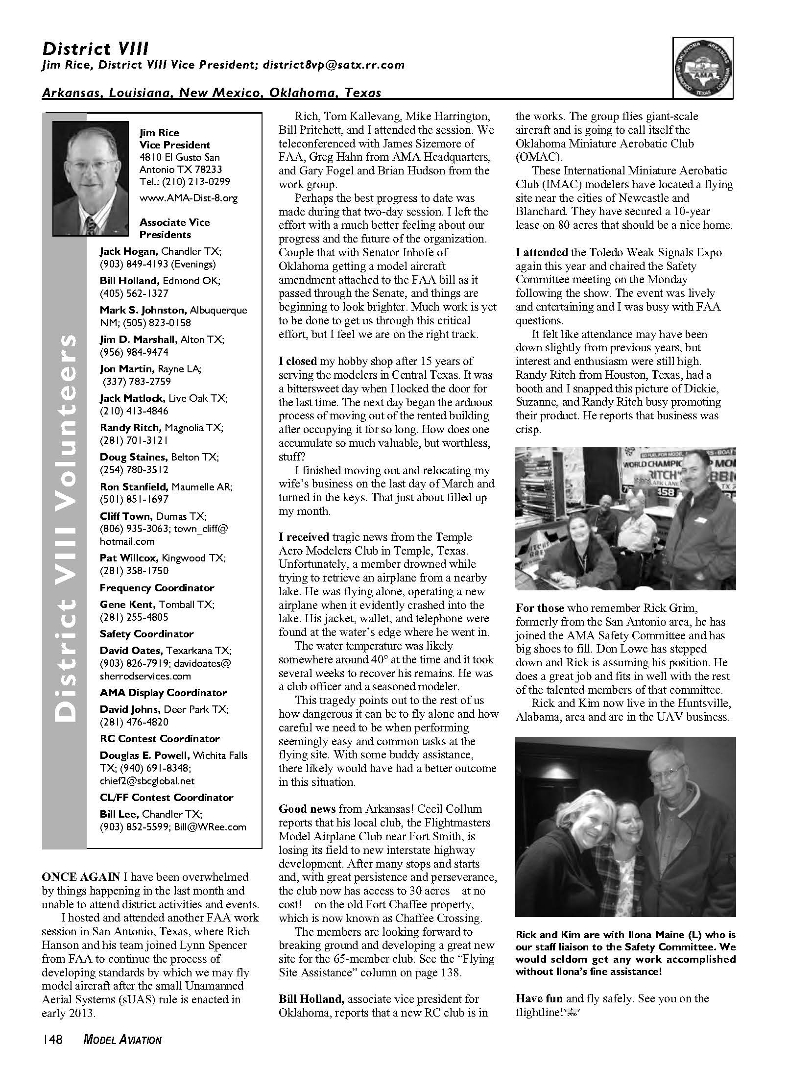 Jim Rice, District VIII Vice President; district8vp@satx.rr.com