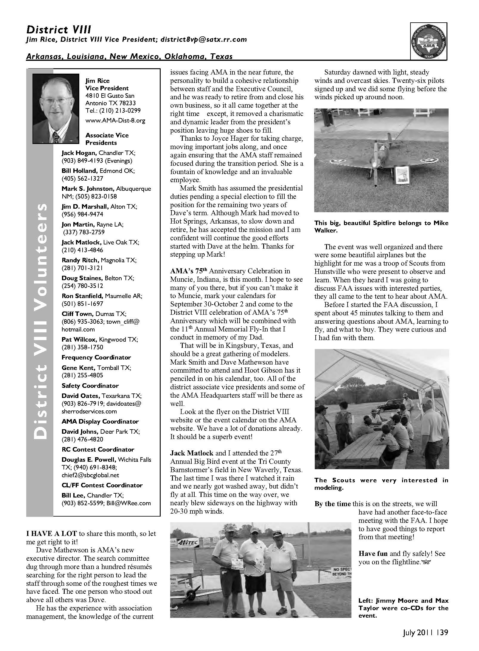 Jim Rice, District VIII Vice President; district8vp@satx.rr.com